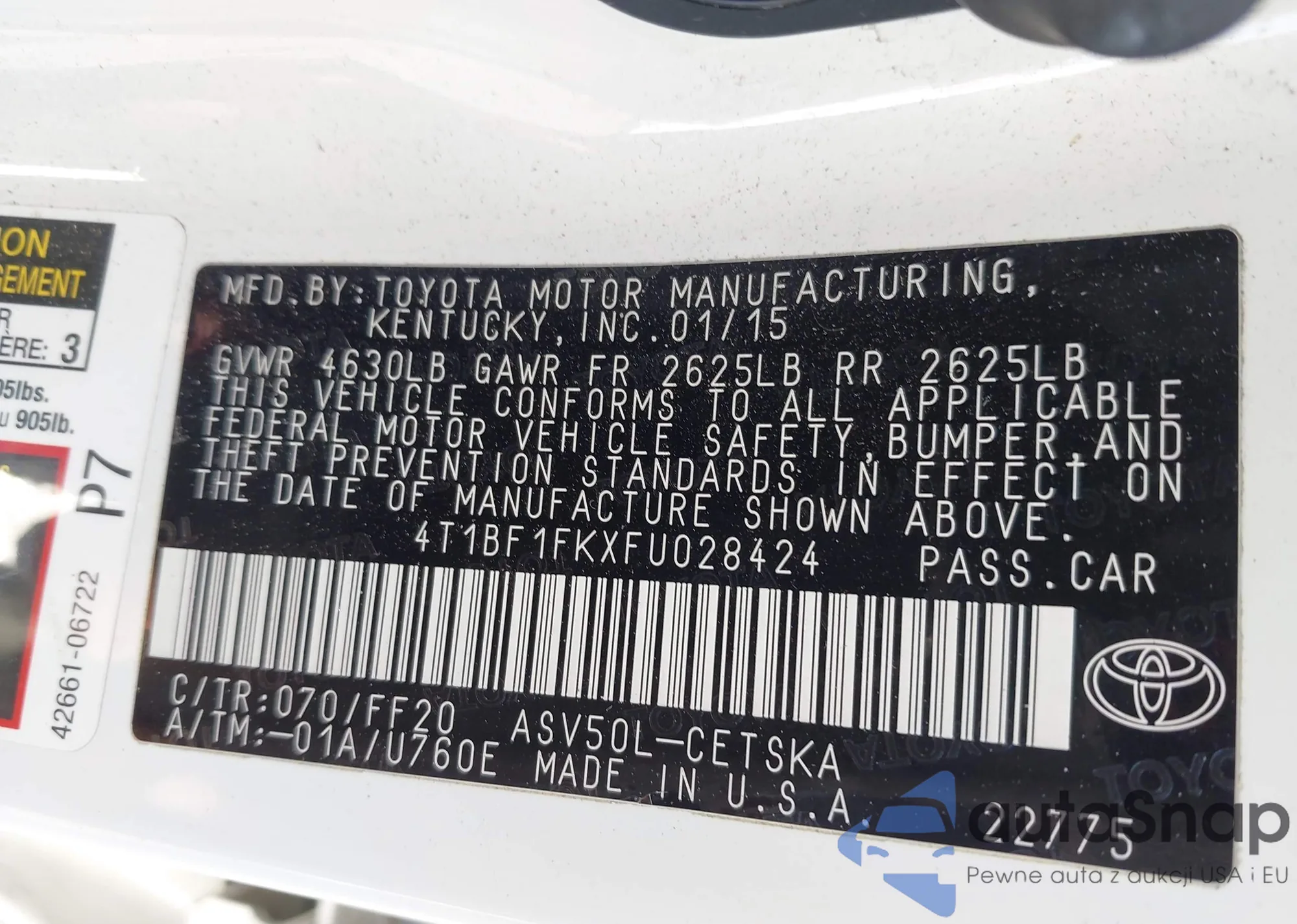 • VIN 4T1BF1FKXFU028424