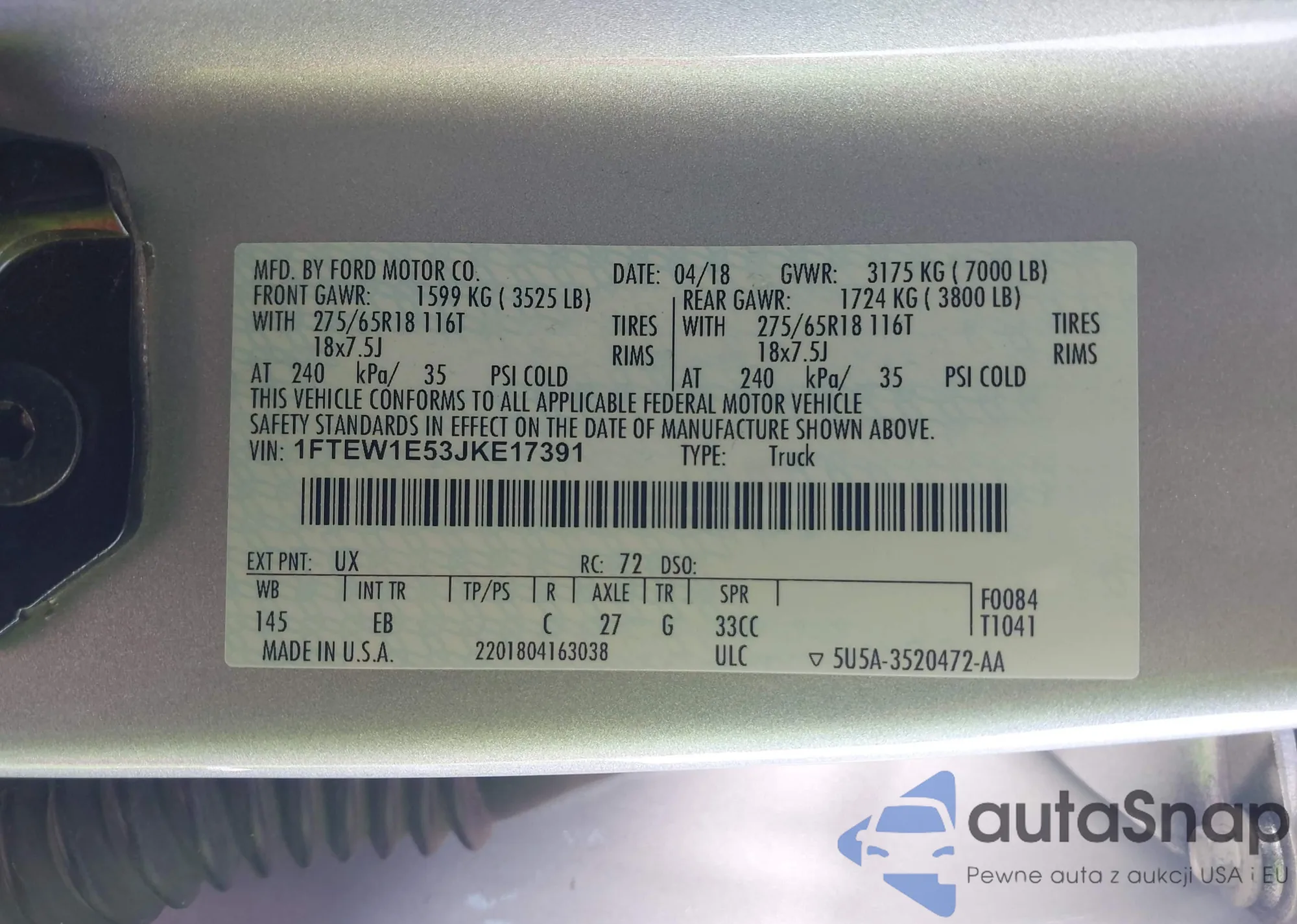 • VIN WAUM2AFR5GA031219