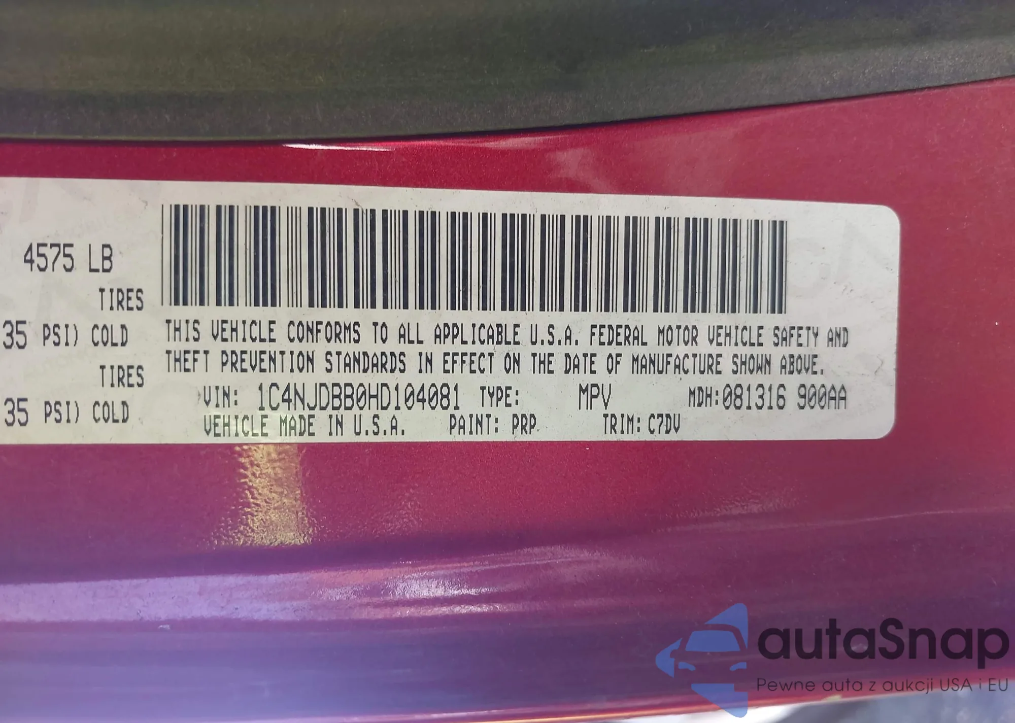 • VIN 1C4RJFBG0EC103538