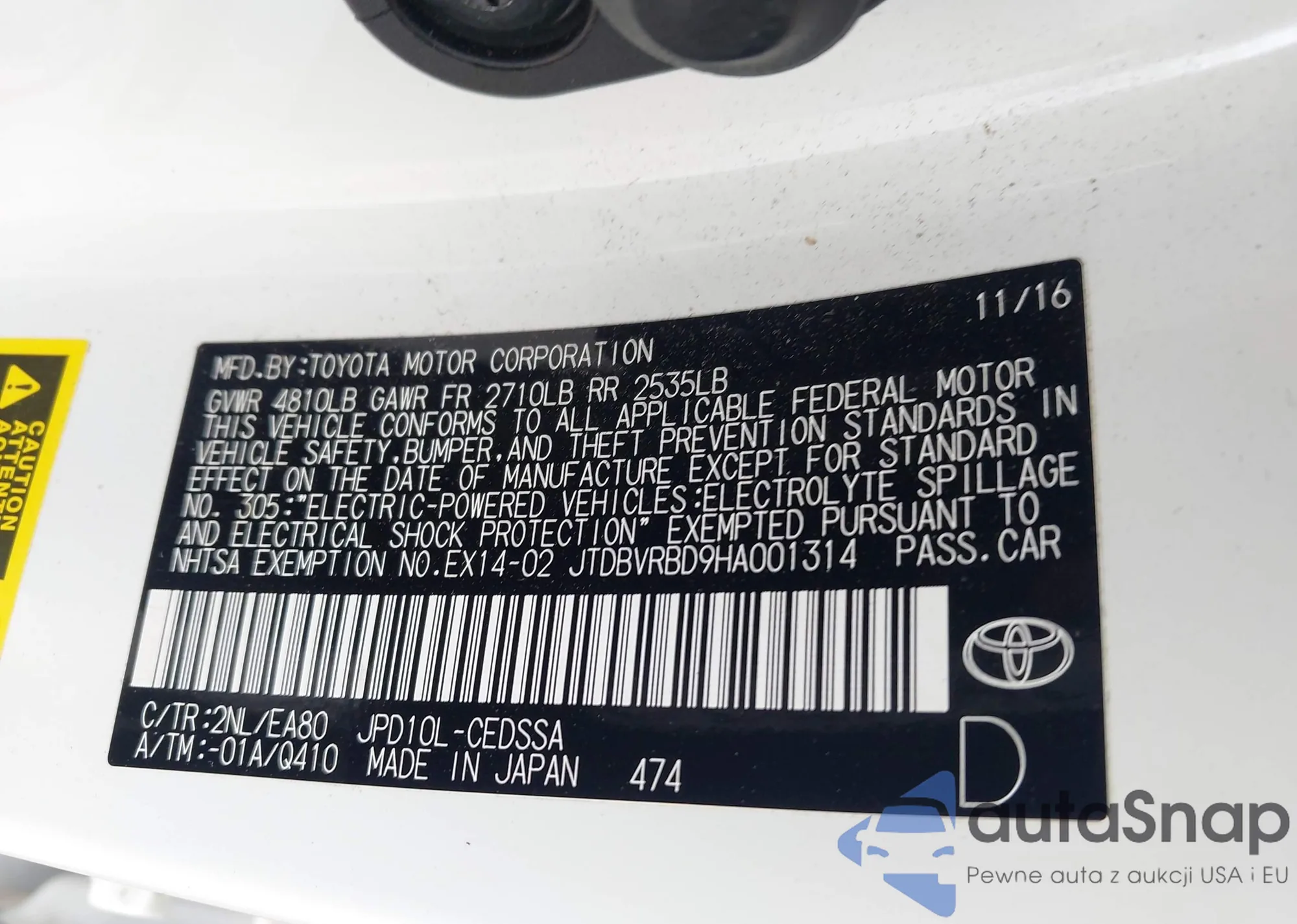 • VIN JTDBVRBD9HA001314