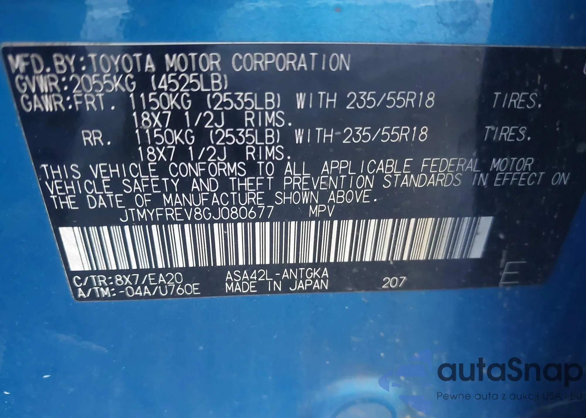 • VIN JTMYFREV8GJ080677