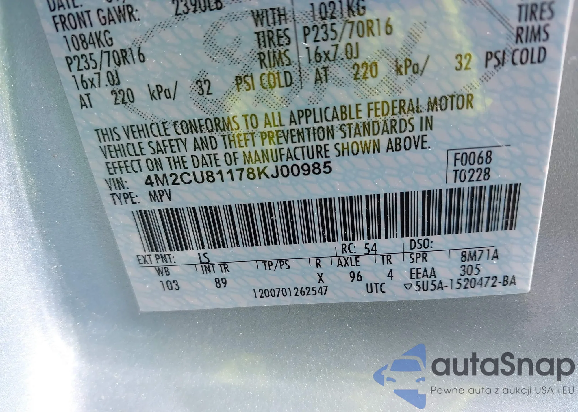 • VIN 4M2CU81178KJ00985
