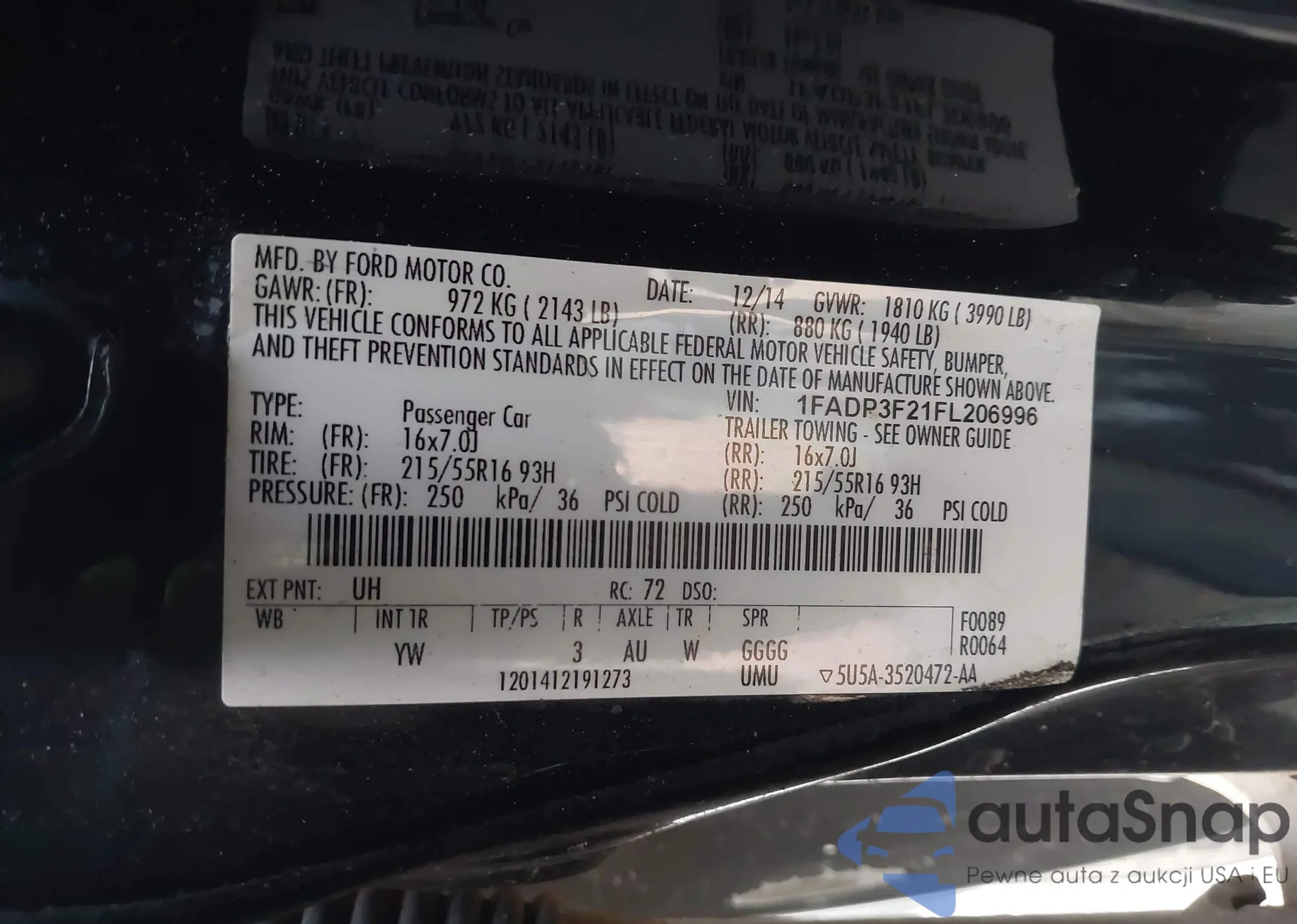 LOT: 42992948 VIN: 1FADP3F21FL206996