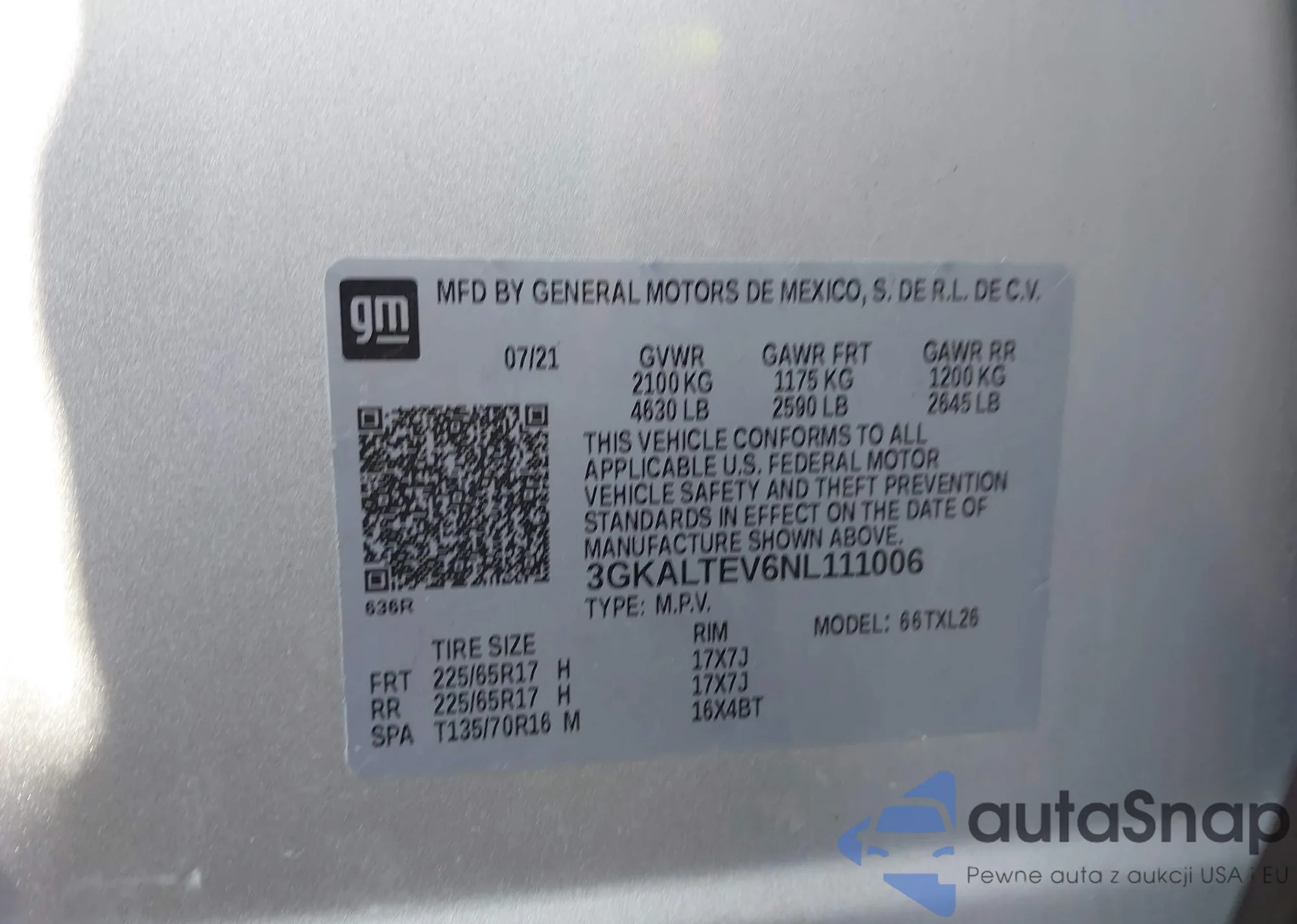 • VIN 3GKALTEV6NL111006