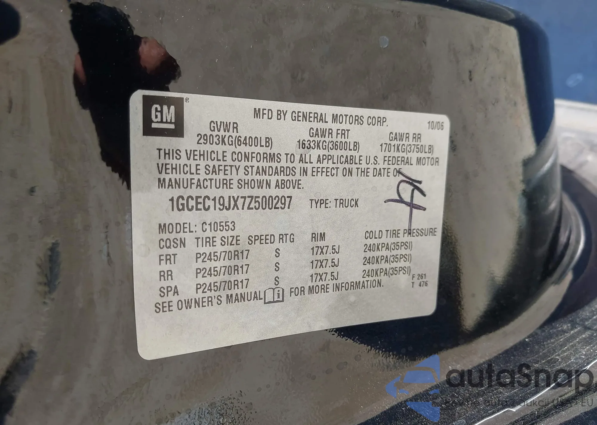 • VIN 1GCEC19JX7Z500297