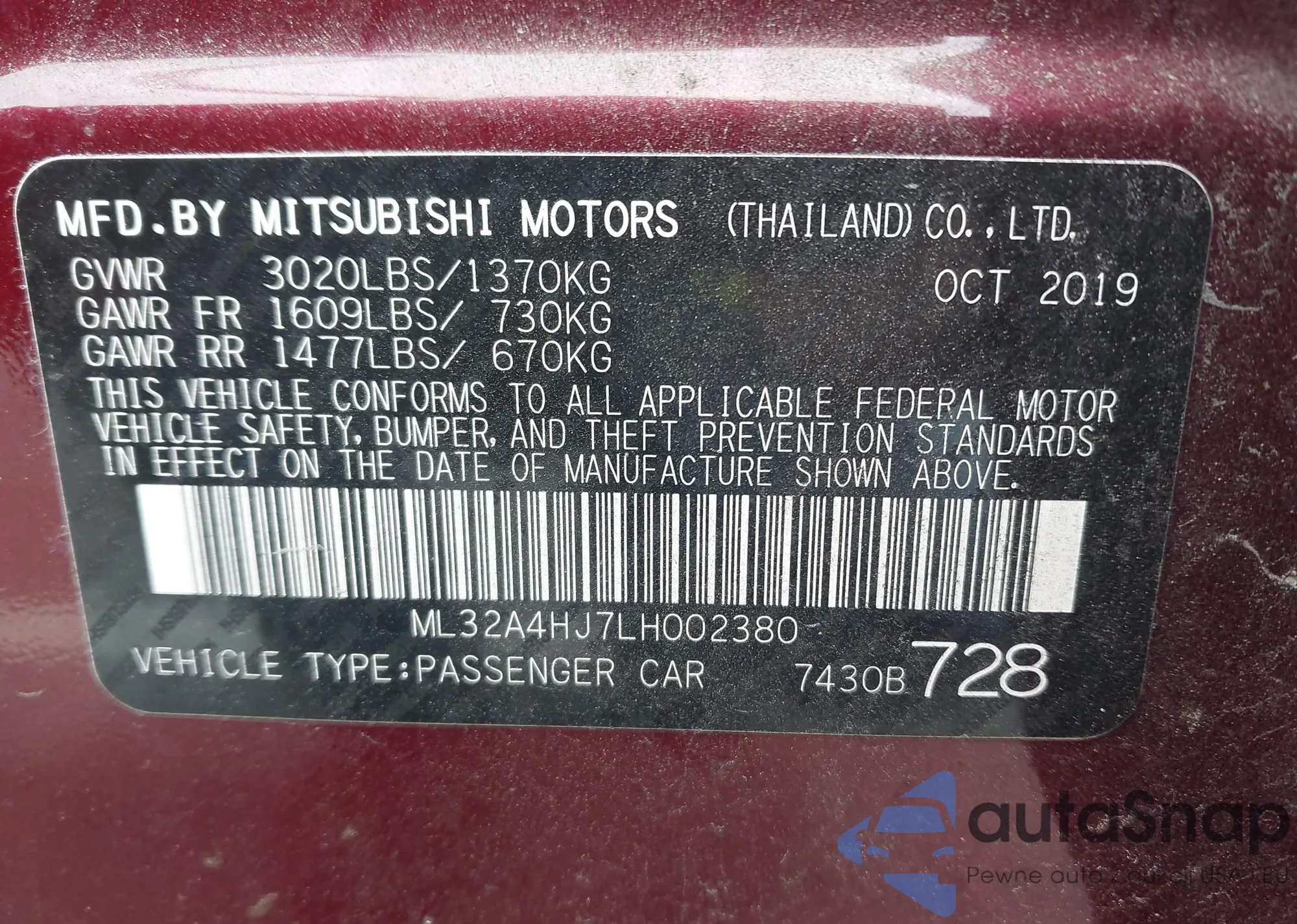 • VIN ML32A4HJ7LH002380