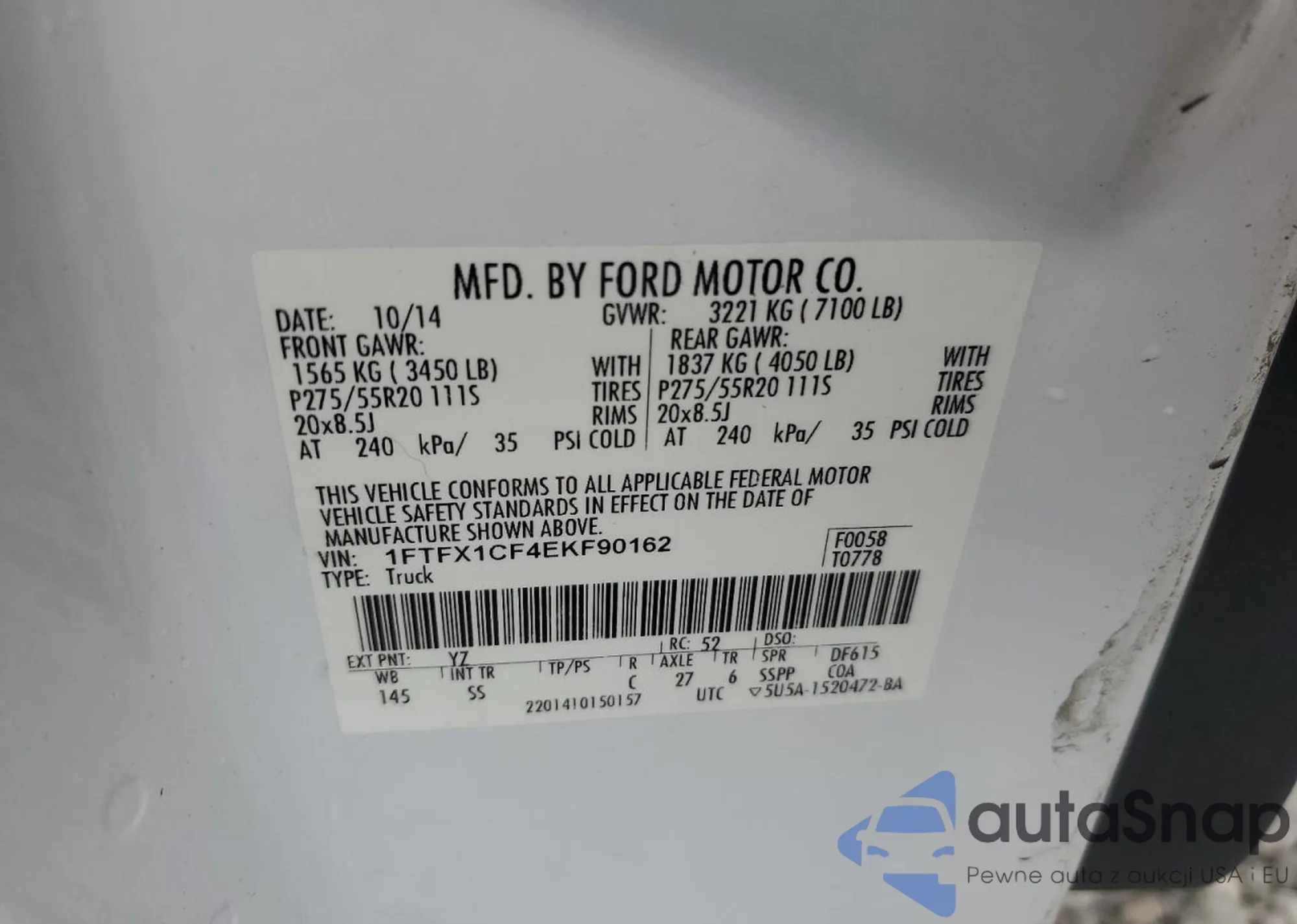 LOT: 81745225 VIN: 1FTFX1CF4EKF90162