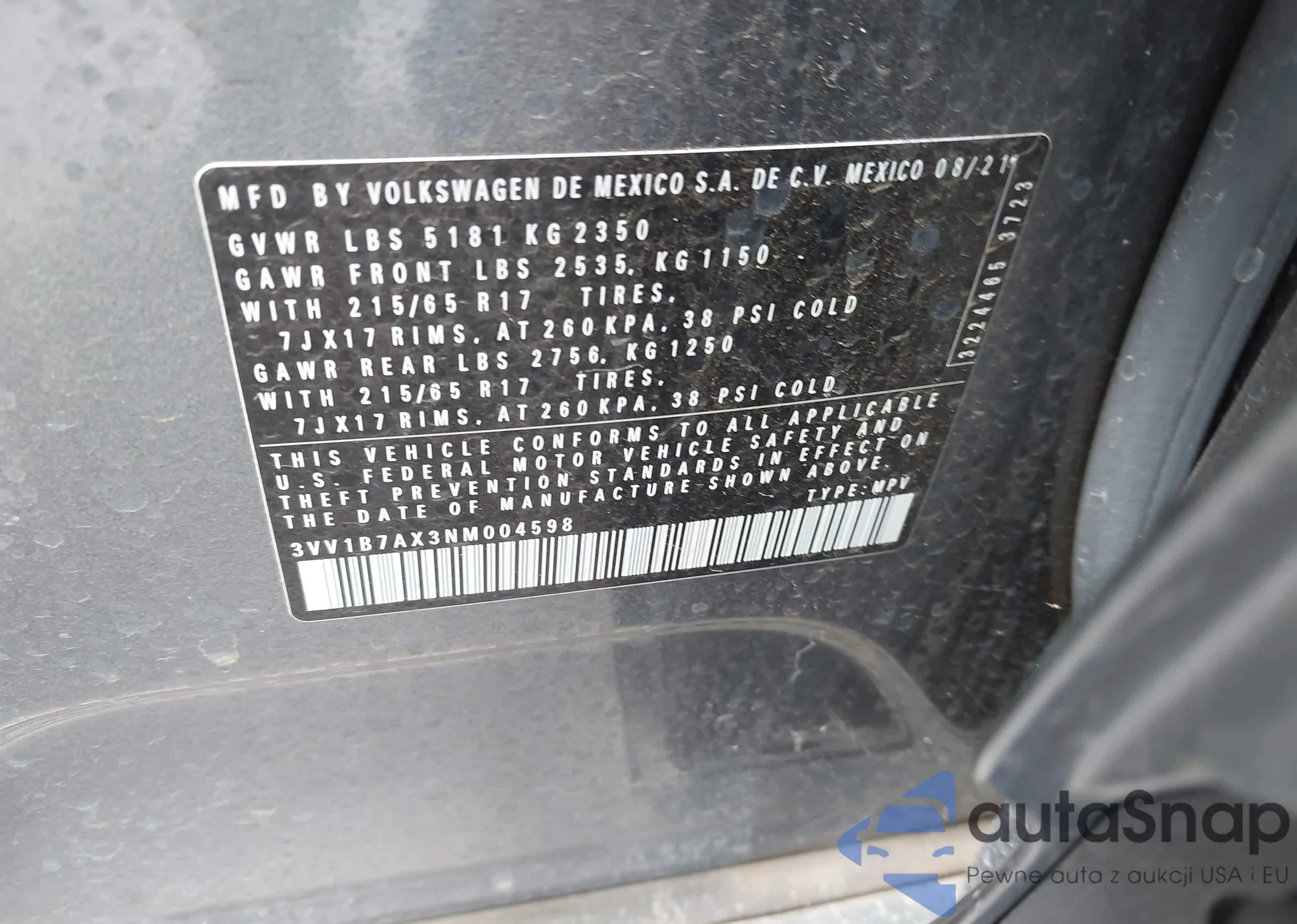 • VIN 3VV1B7AX3NM004598