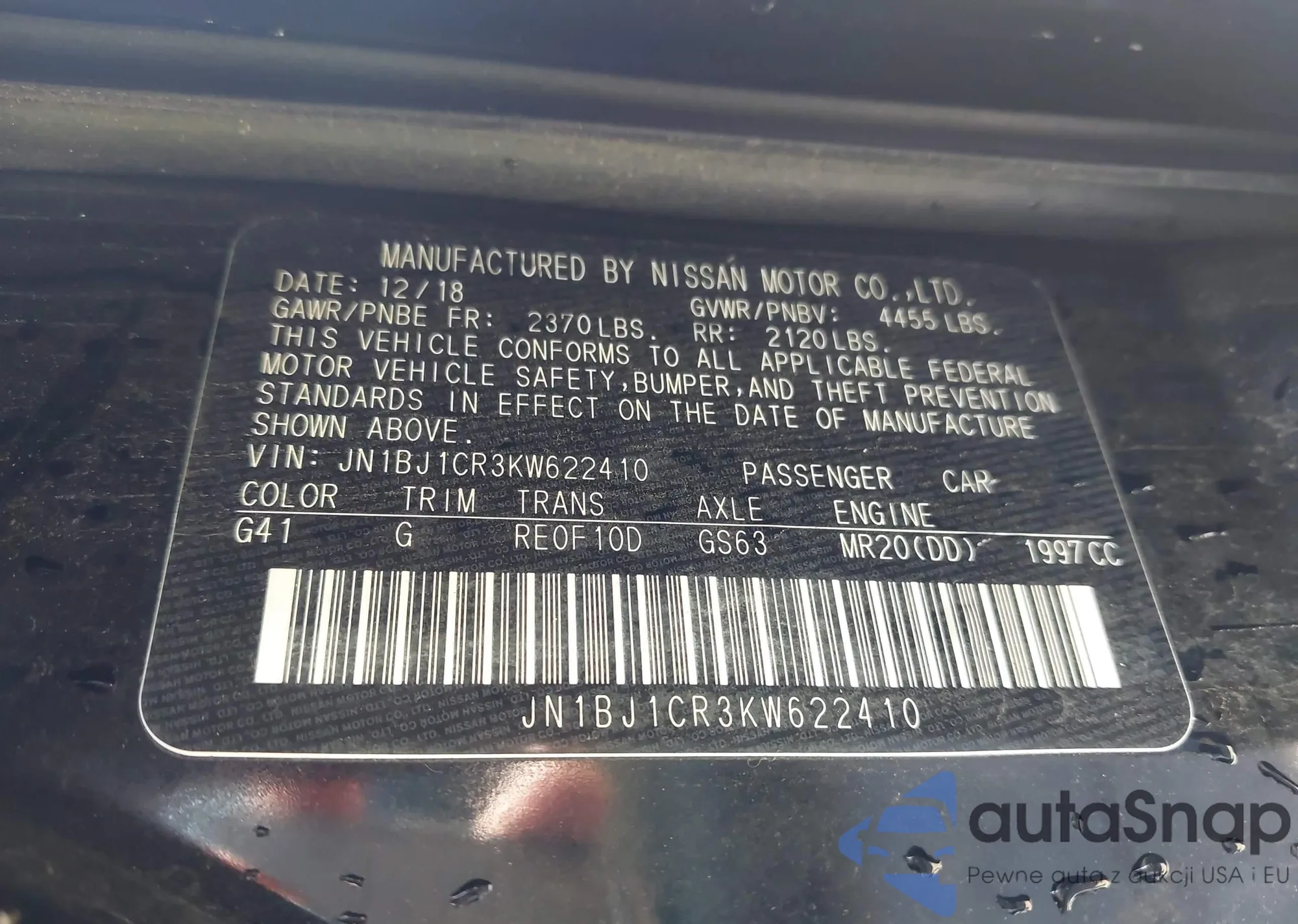 LOT: 43330373 VIN: JN1BJ1CR3KW622410