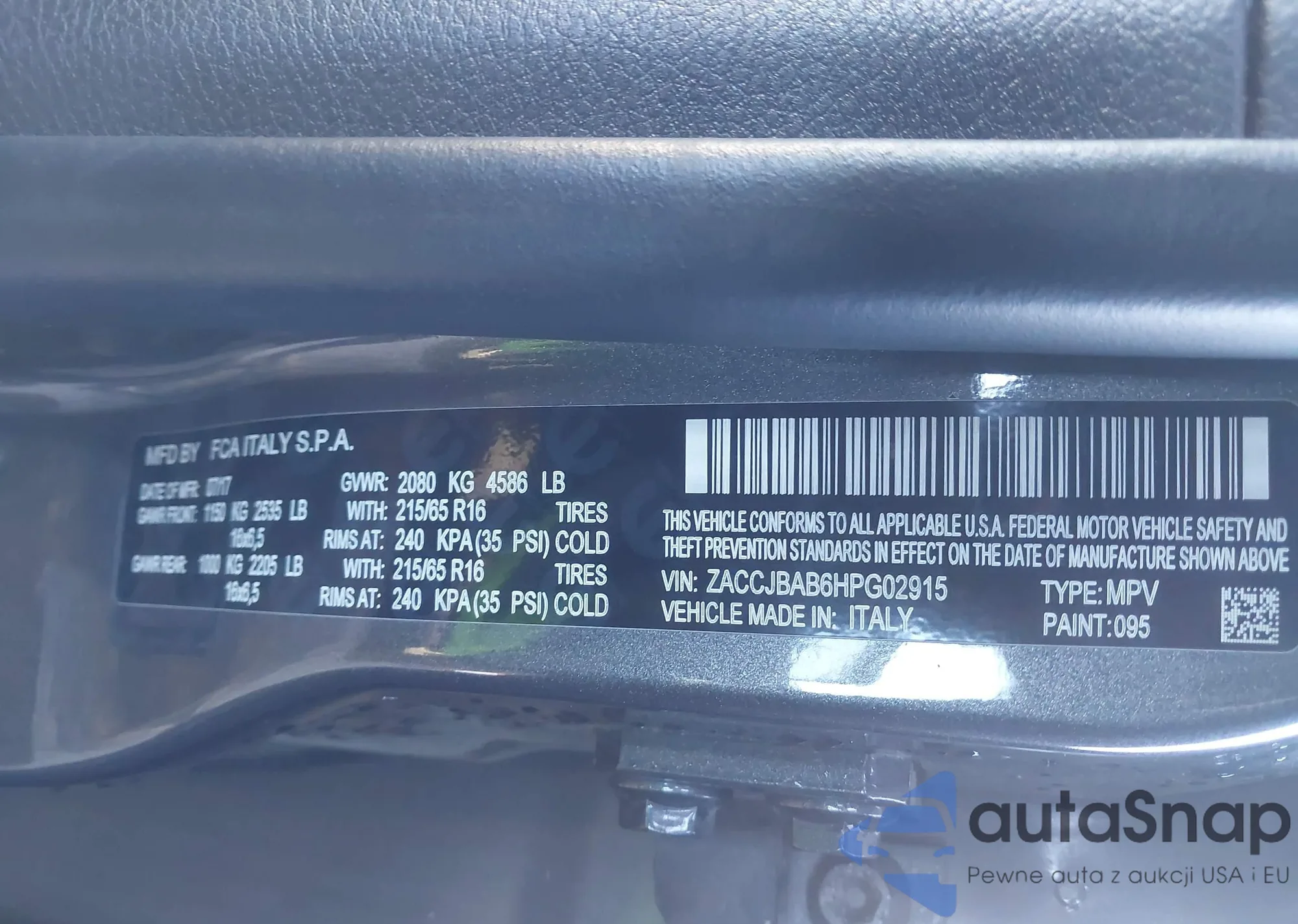 LOT: 43366909 VIN: ZACCJBAB6HPG02915
