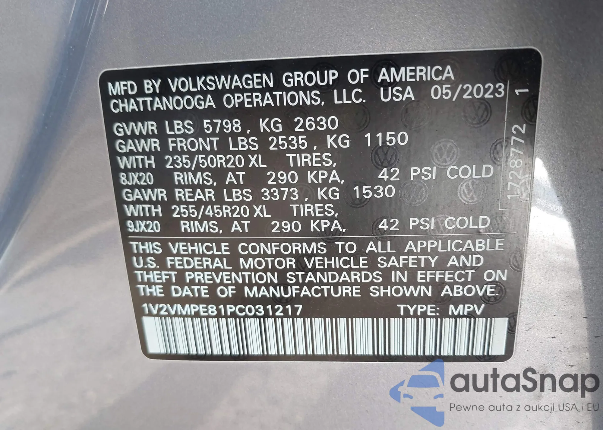 LOT: 43418328 VIN: 1V2VMPE81PC031217