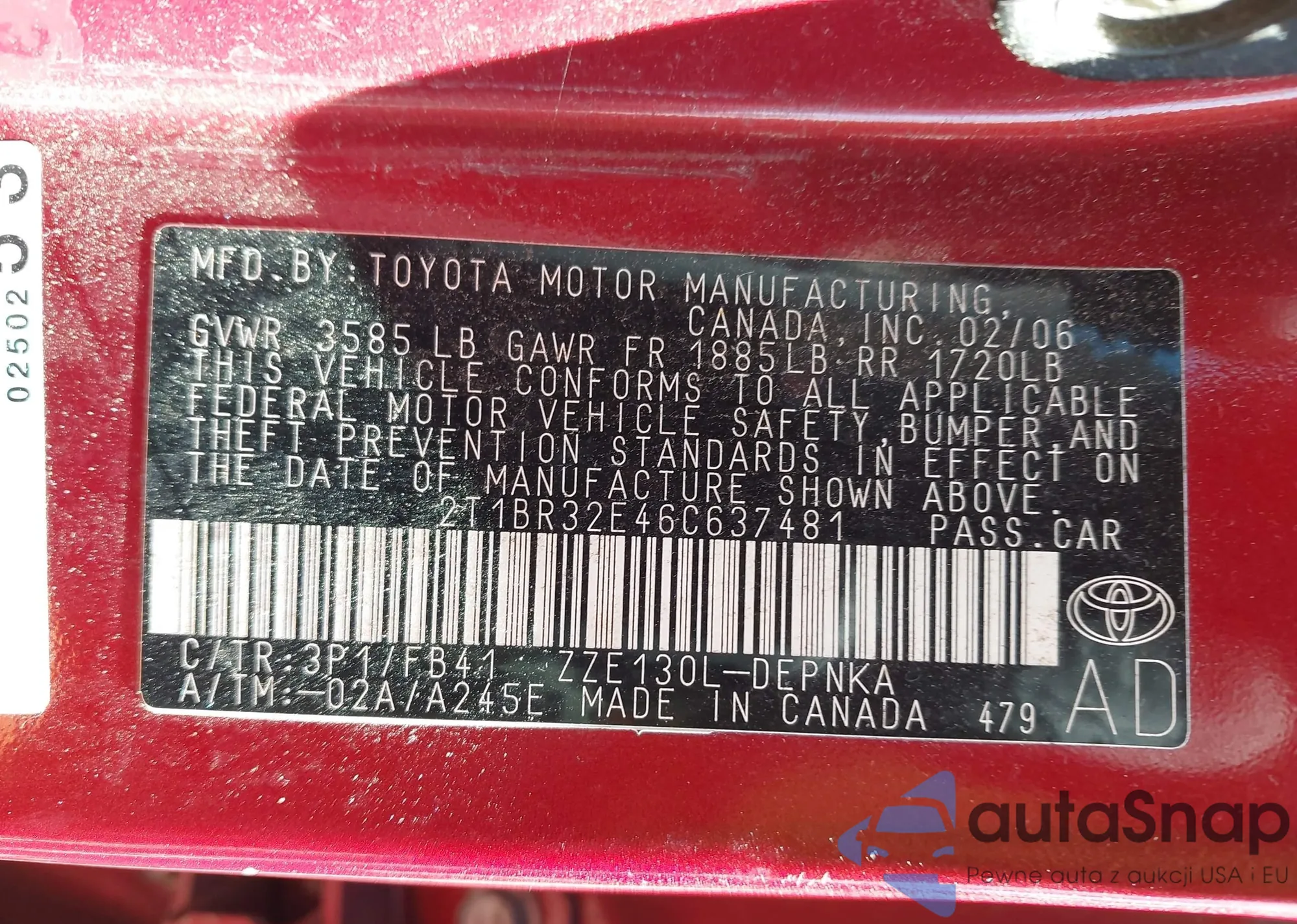 • VIN 2T1BR32E46C637481