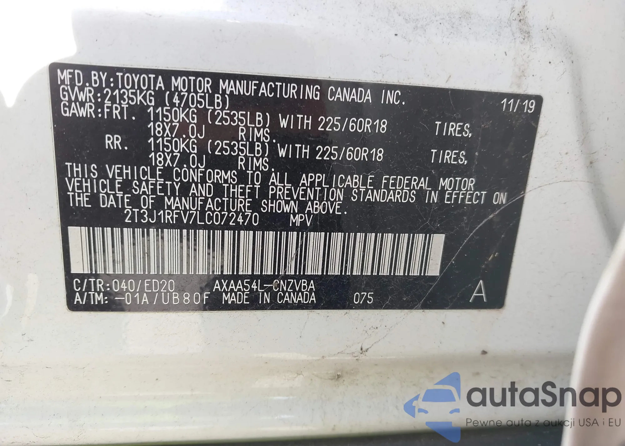 • VIN 2T3J1RFV7LC072470