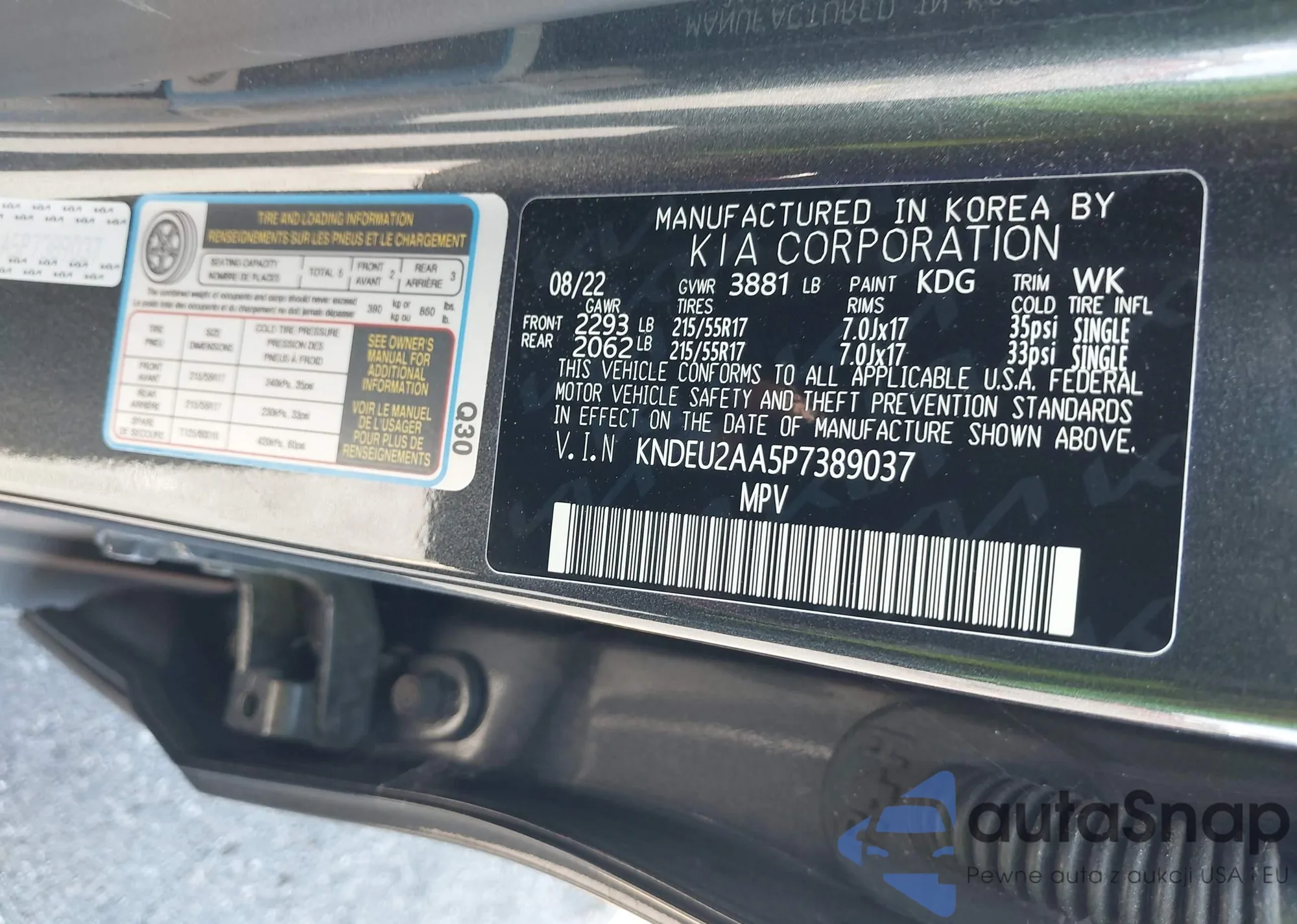 • VIN KNDEU2AA5P7389037
