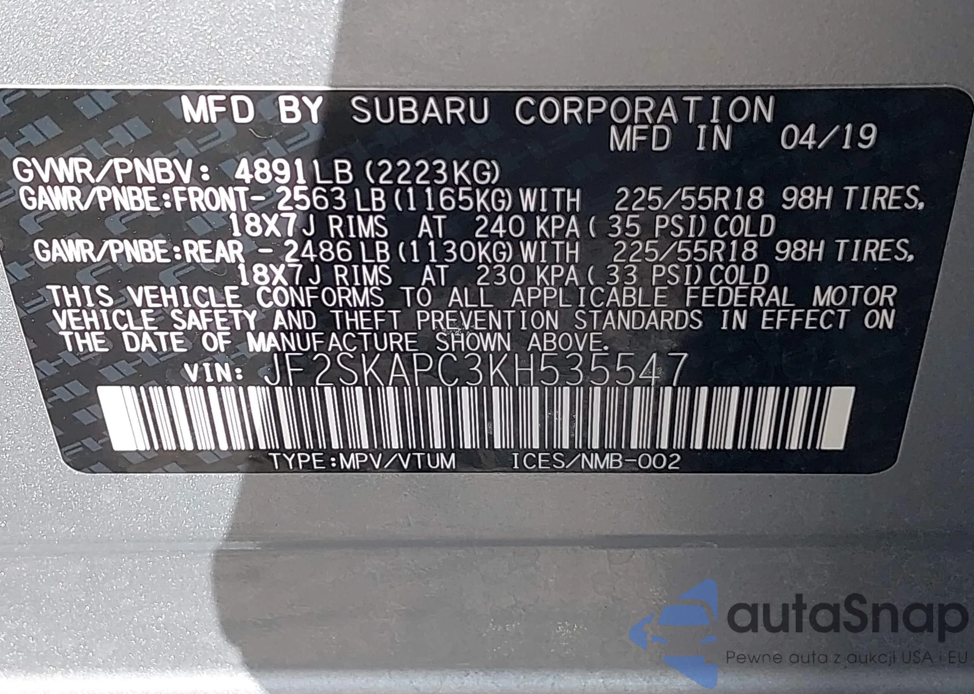 • VIN JF2SKAPC3KH535547