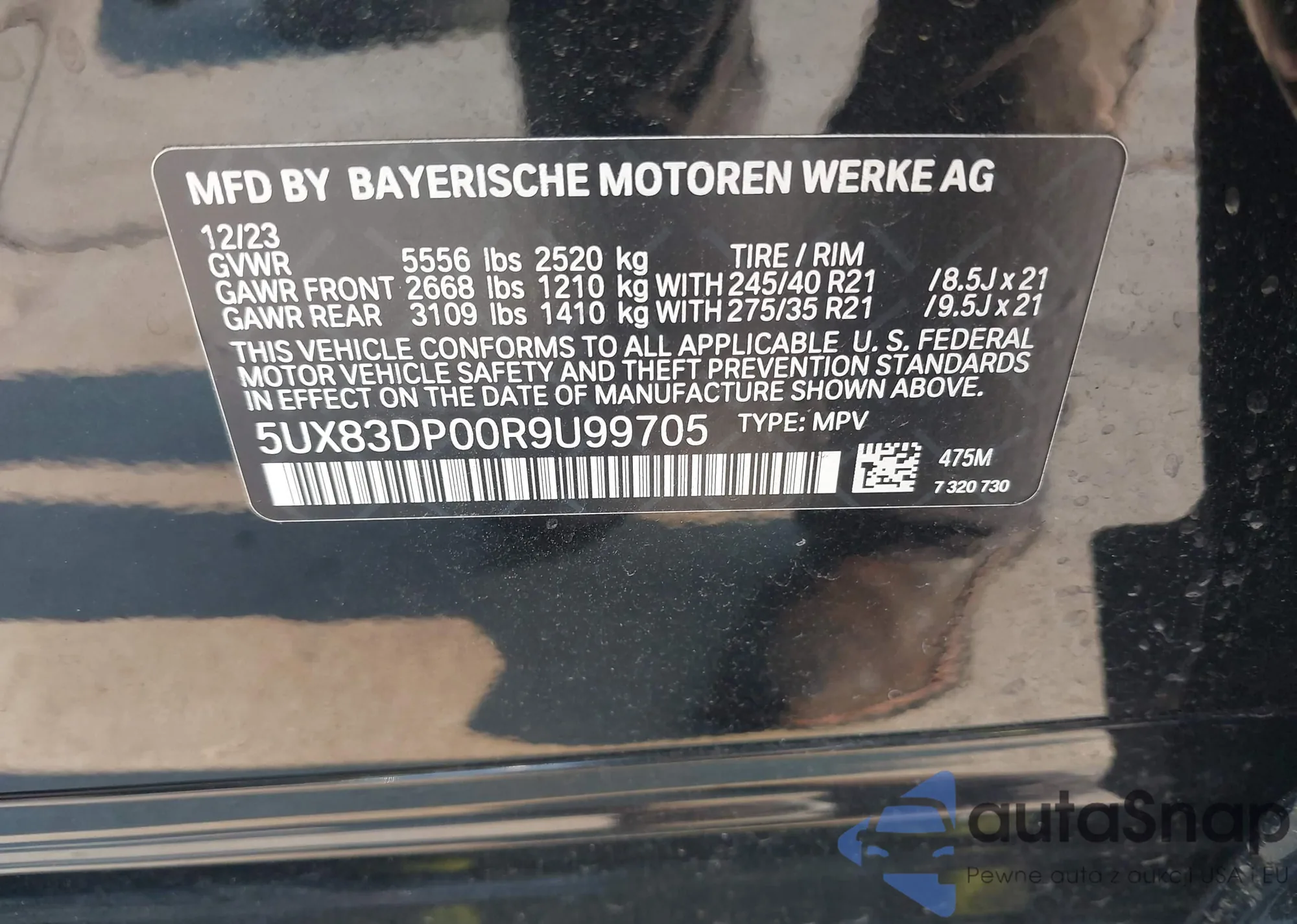 • VIN 5UX83DP00R9U99705