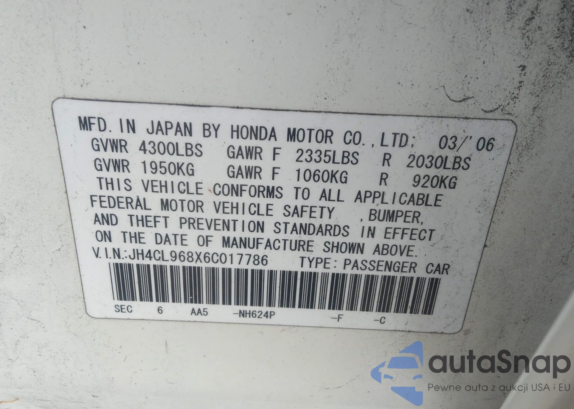 LOT: 42107618 VIN: JH4KB165X5C021471