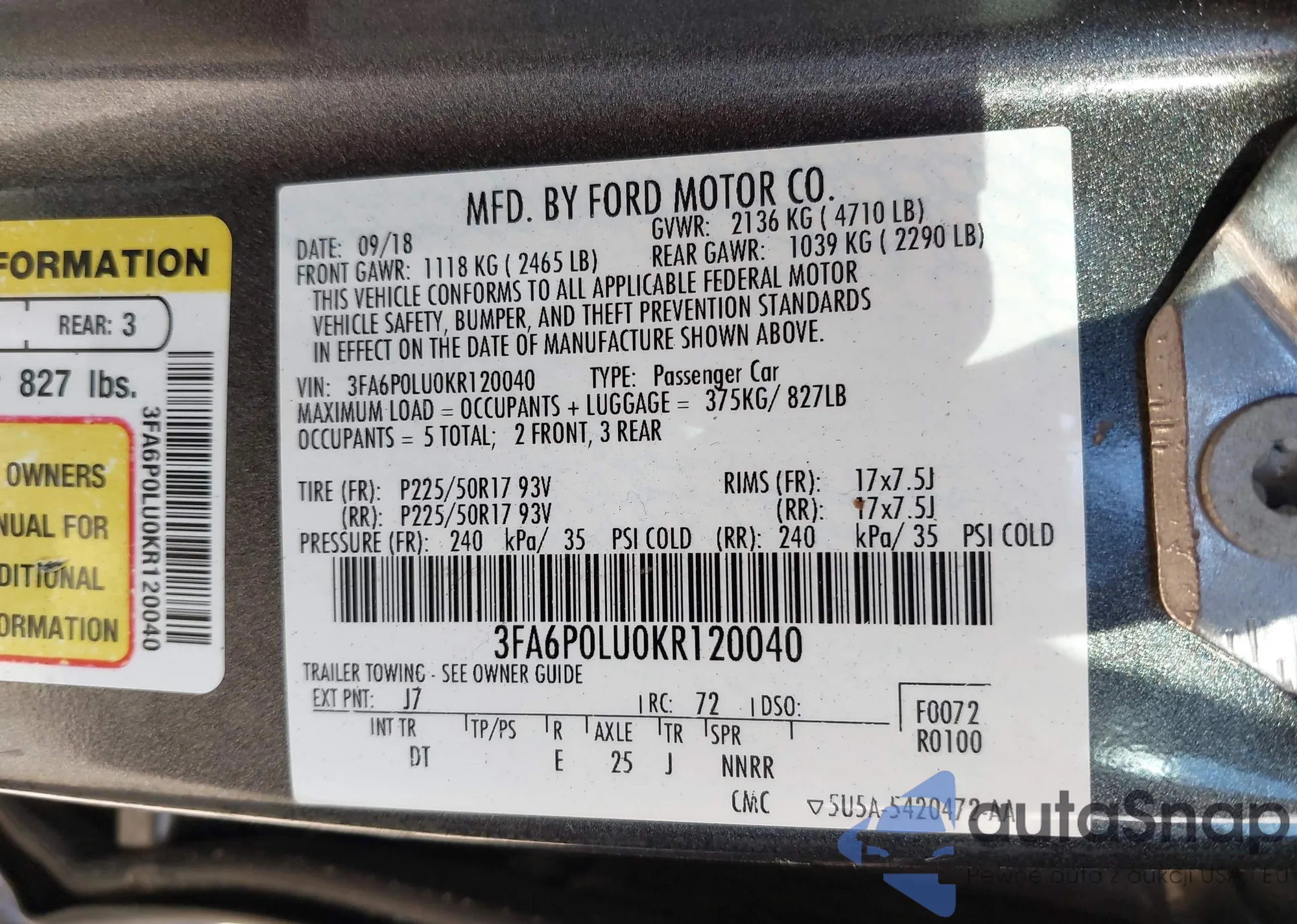 • VIN 3FA6P0LU0KR120040