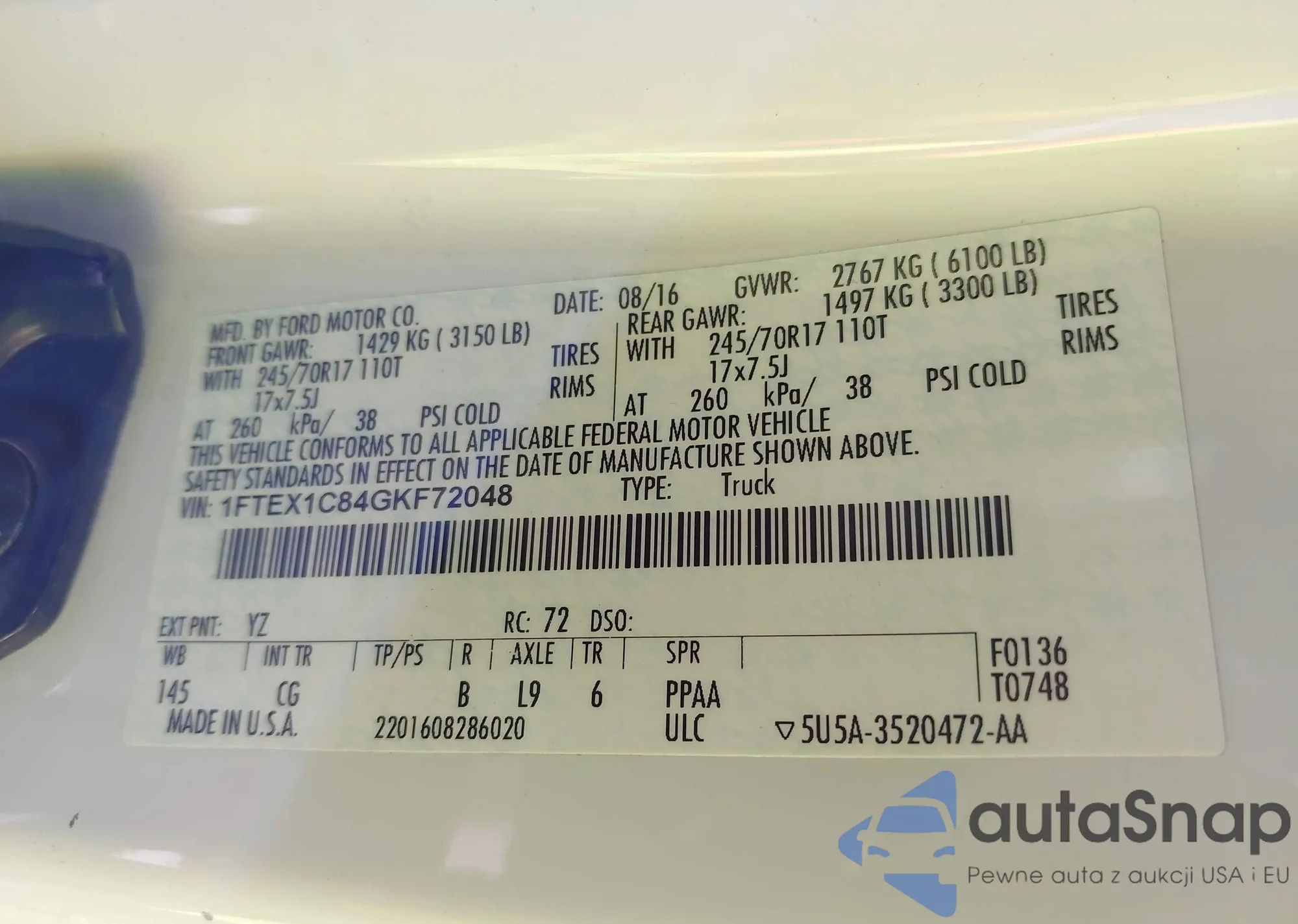 • VIN 1FTEX1C84GKF72048