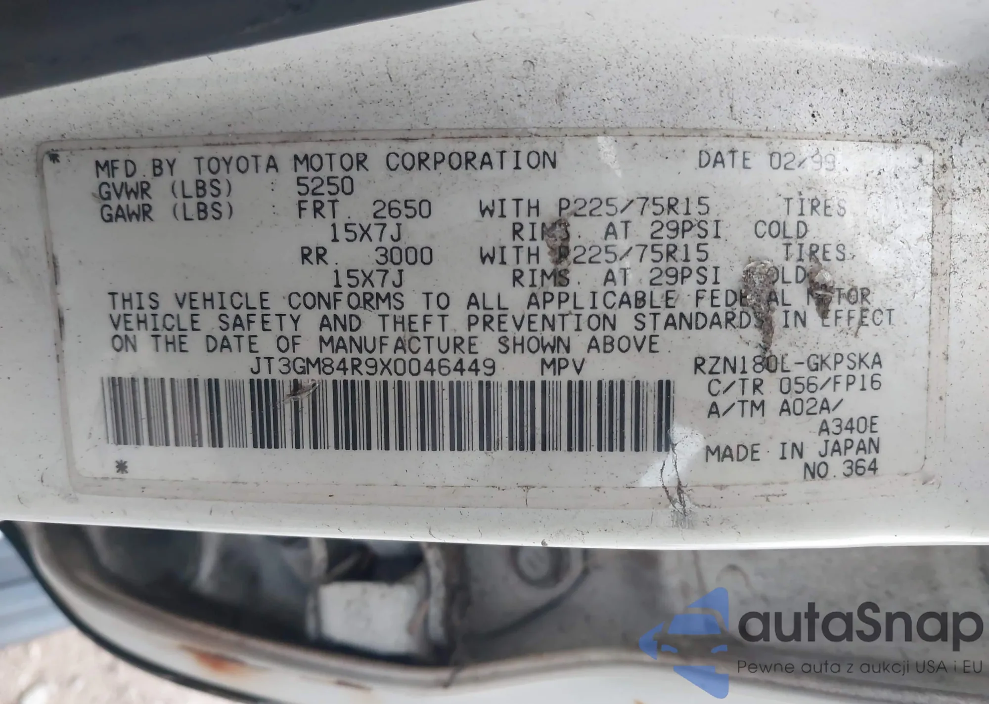 LOT: 43401543 VIN: JT3GM84R9X0046449