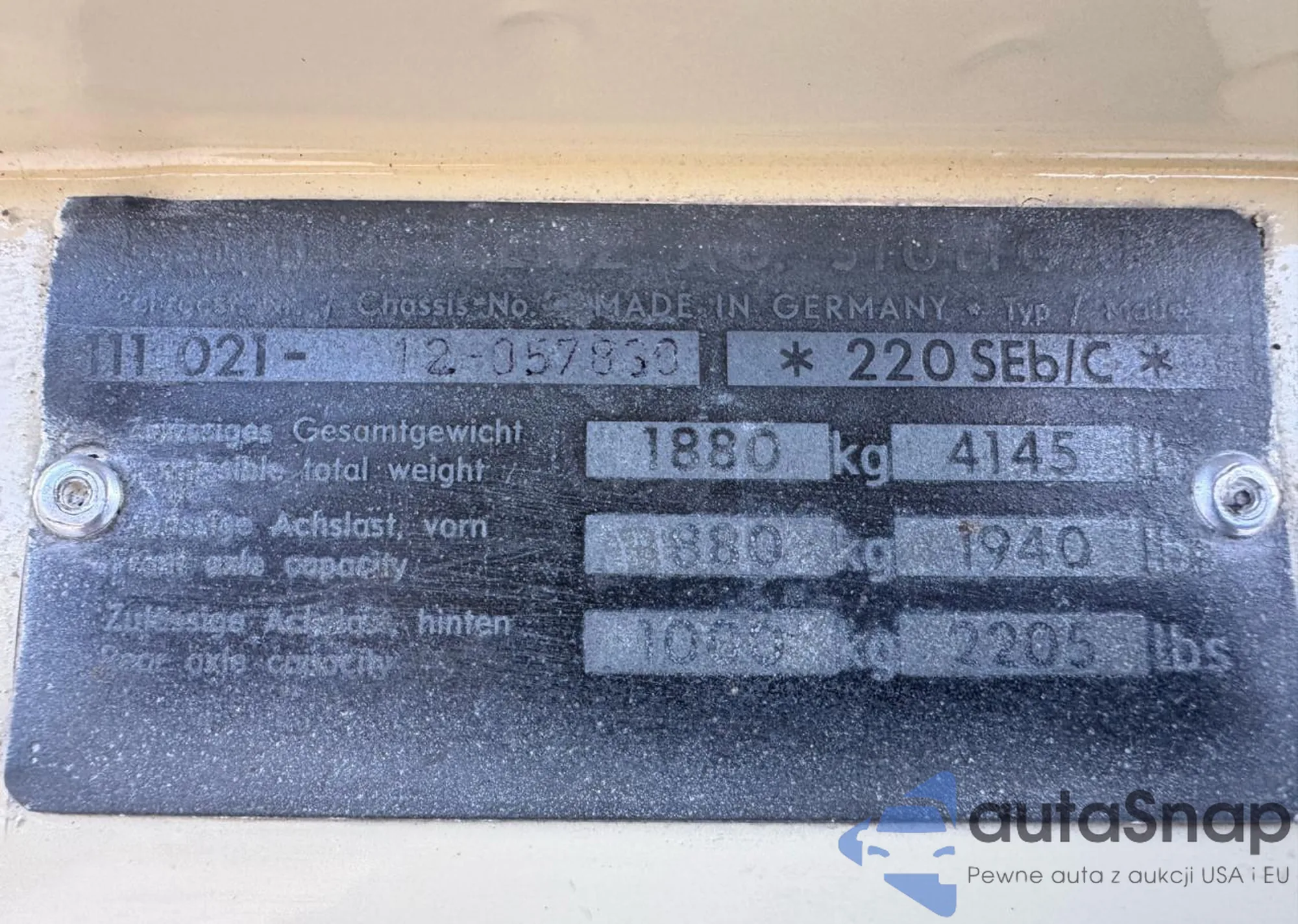 1965 Mercedes Benz 220 Se from USA, damaged, VIN 11102112057830