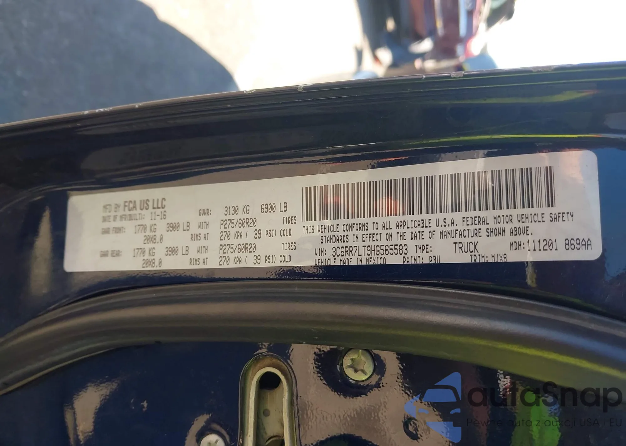 • VIN 3C6RR7LT9HG565583