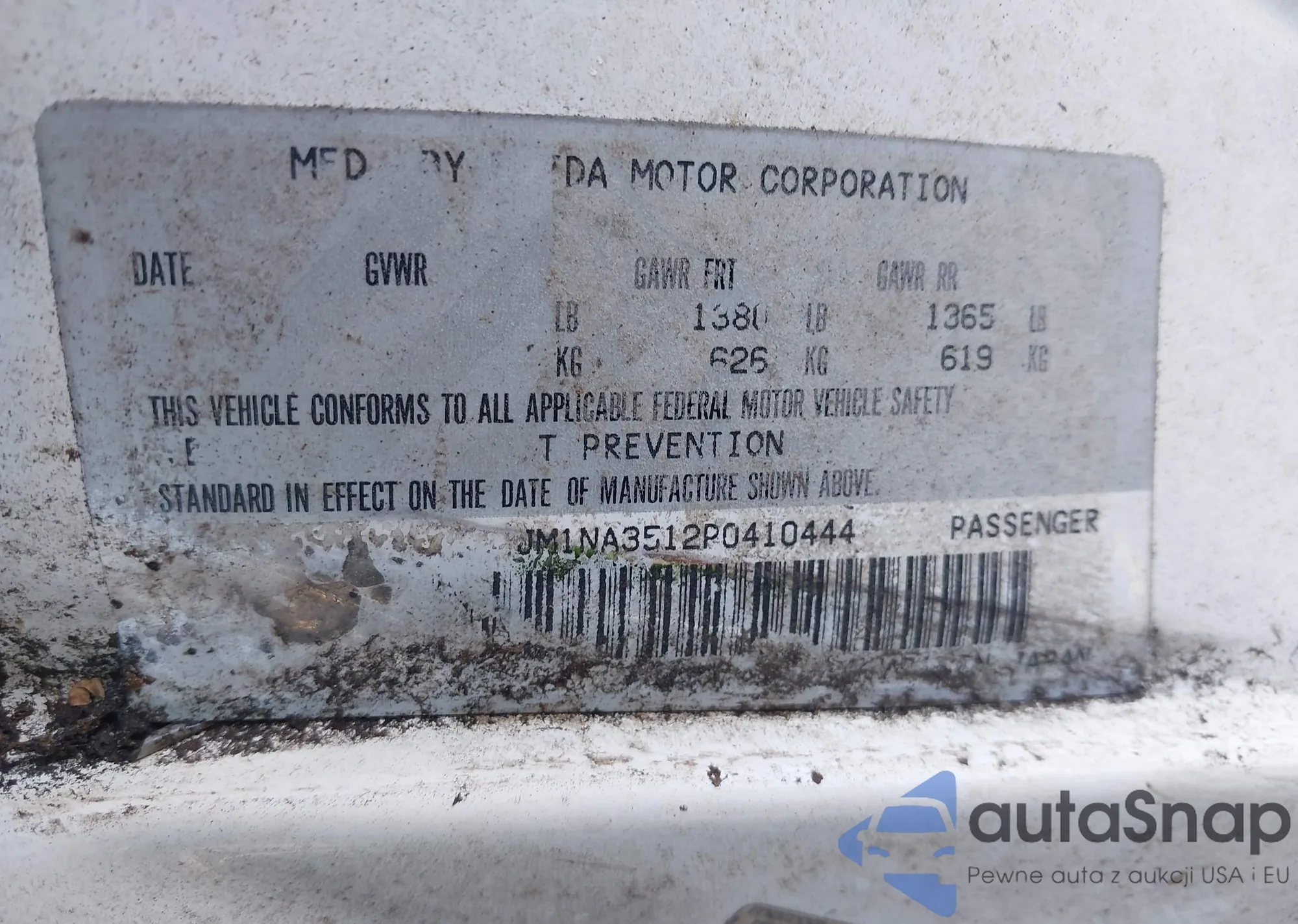 LOT: 43408003 VIN: JM1NA3512P0410444