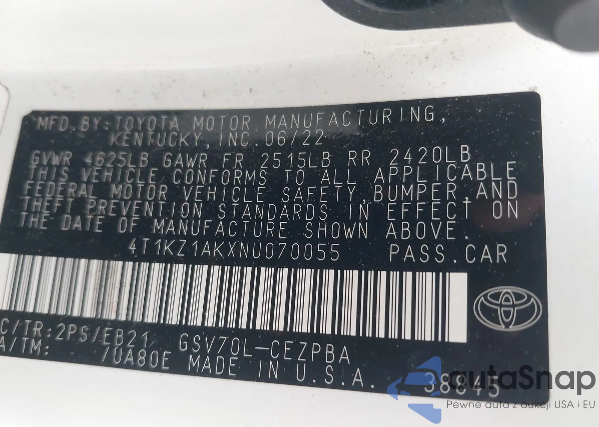 • VIN 4T1KZ1AKXNU070055
