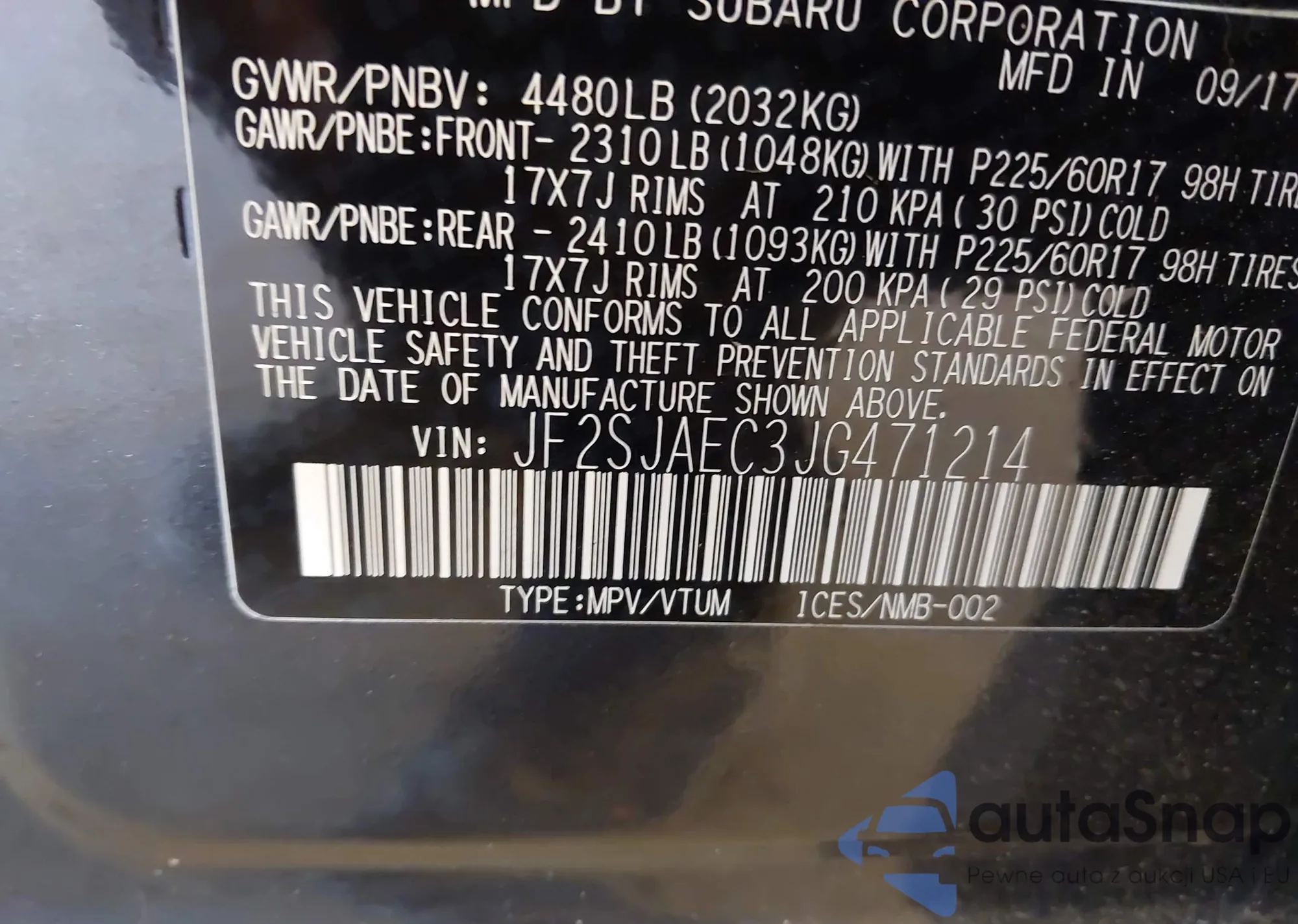 • VIN JF2SJAEC3JG471214