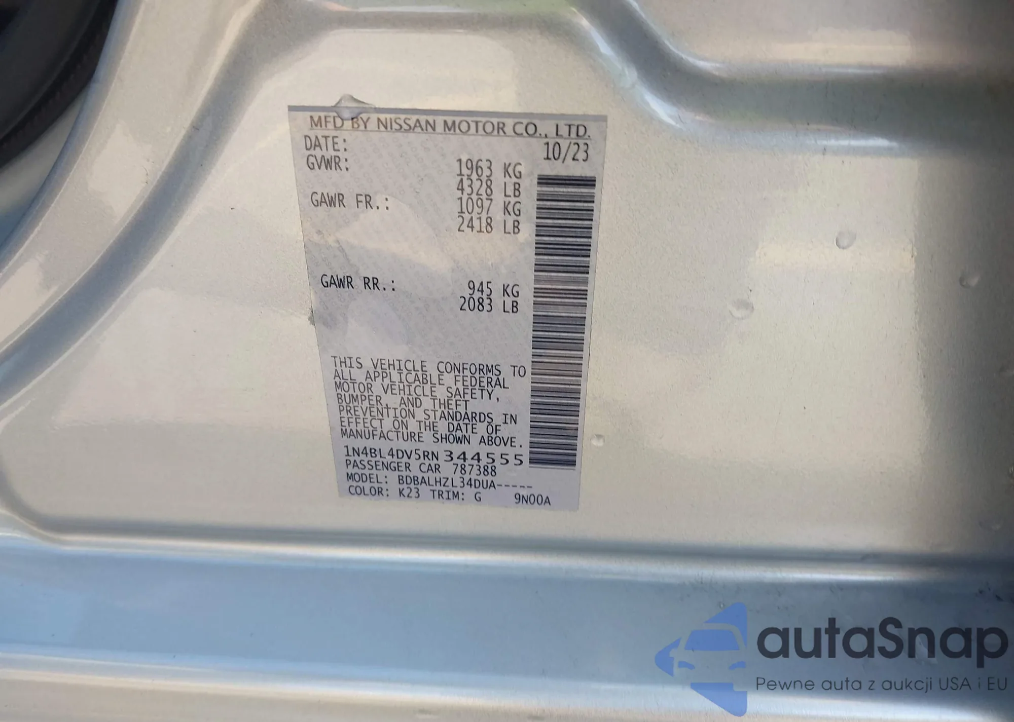 LOT: 43403018 VIN: 1N4BL4DV5RN344555