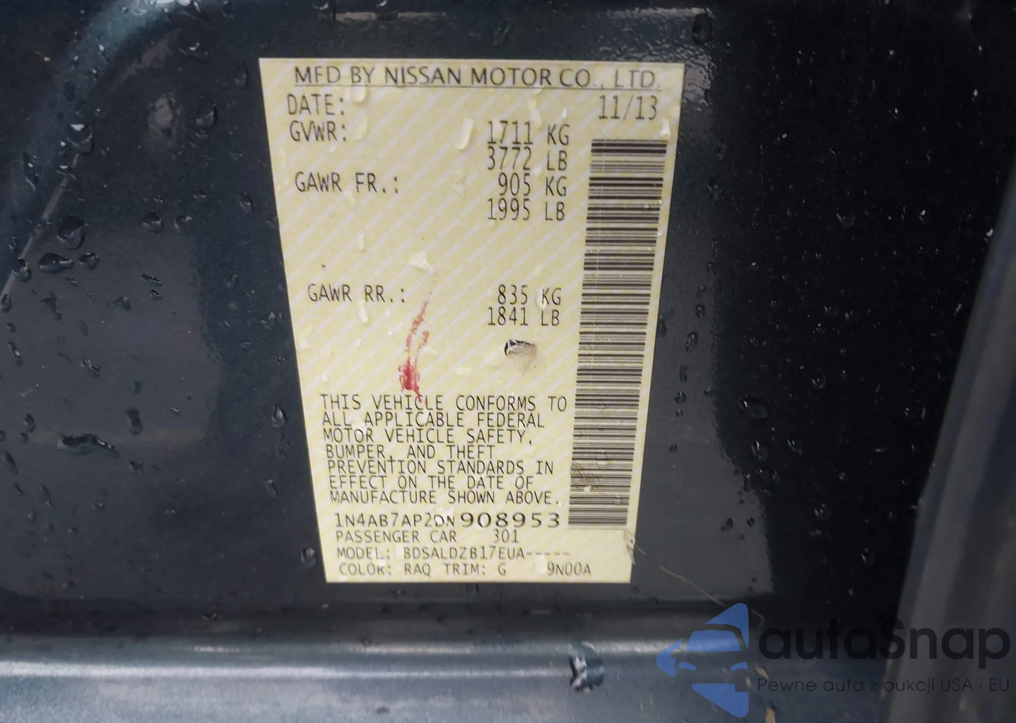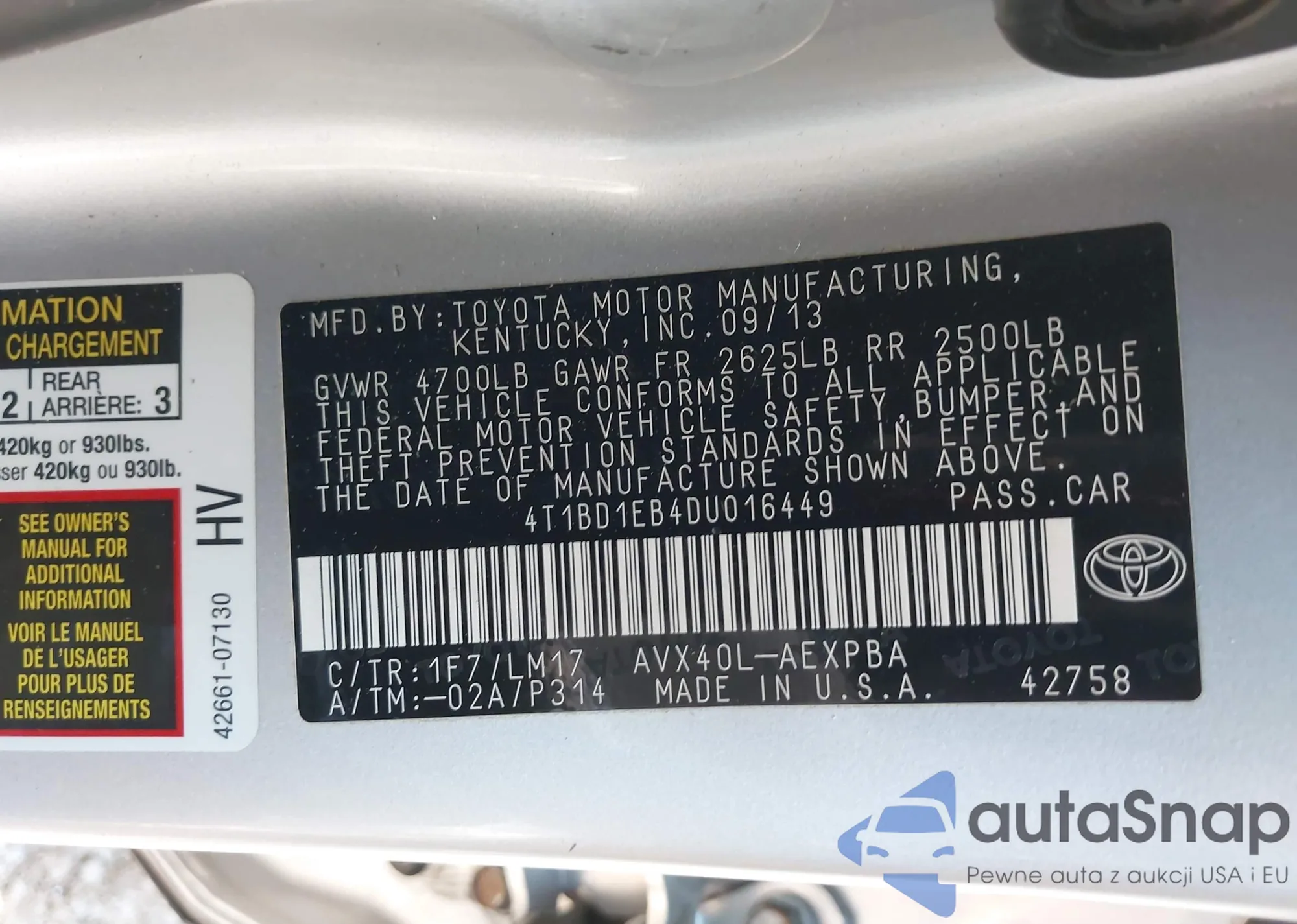 • VIN 4T1BD1EB4DU016449