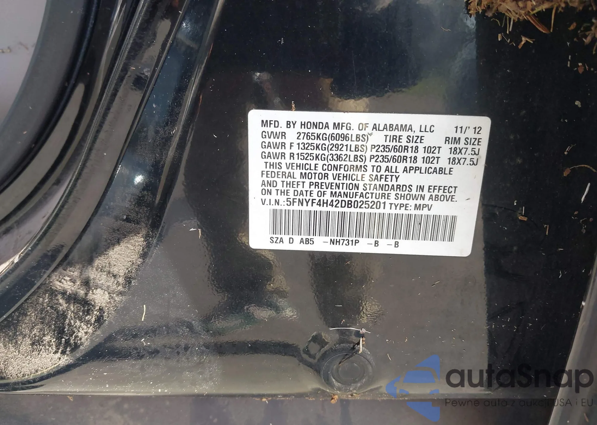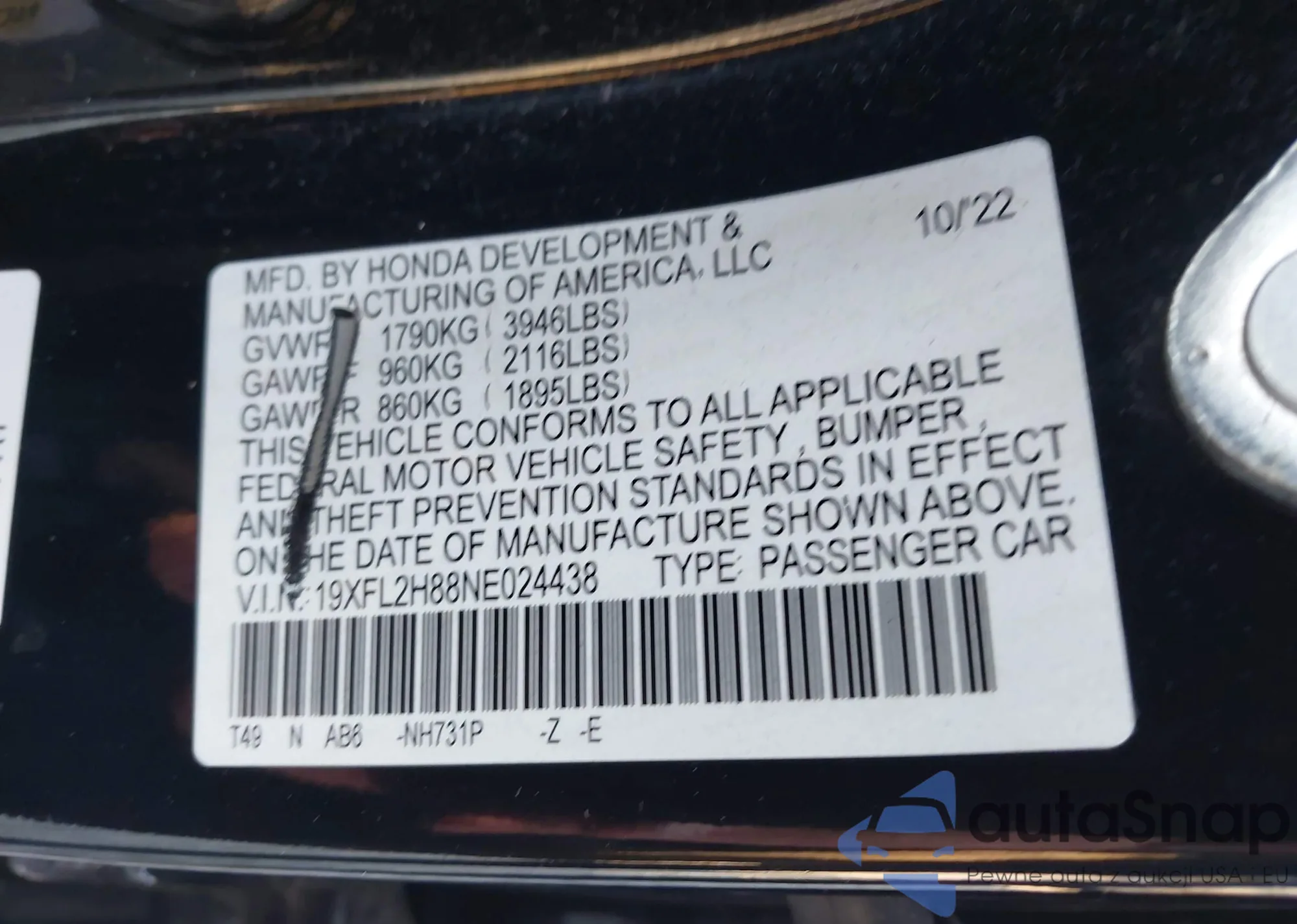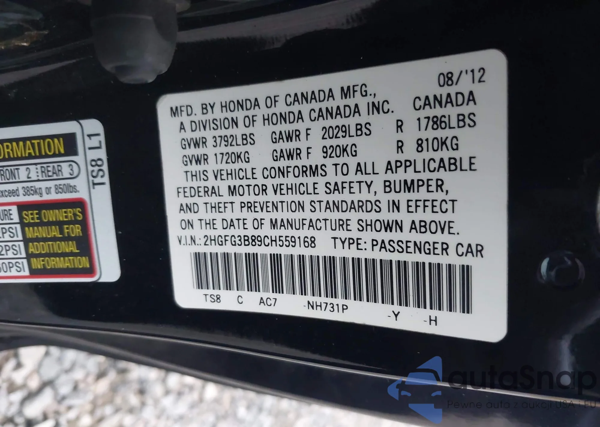 • VIN 2HGFC2F73HH568947