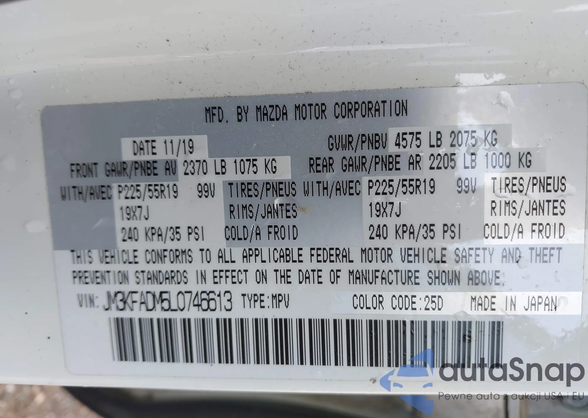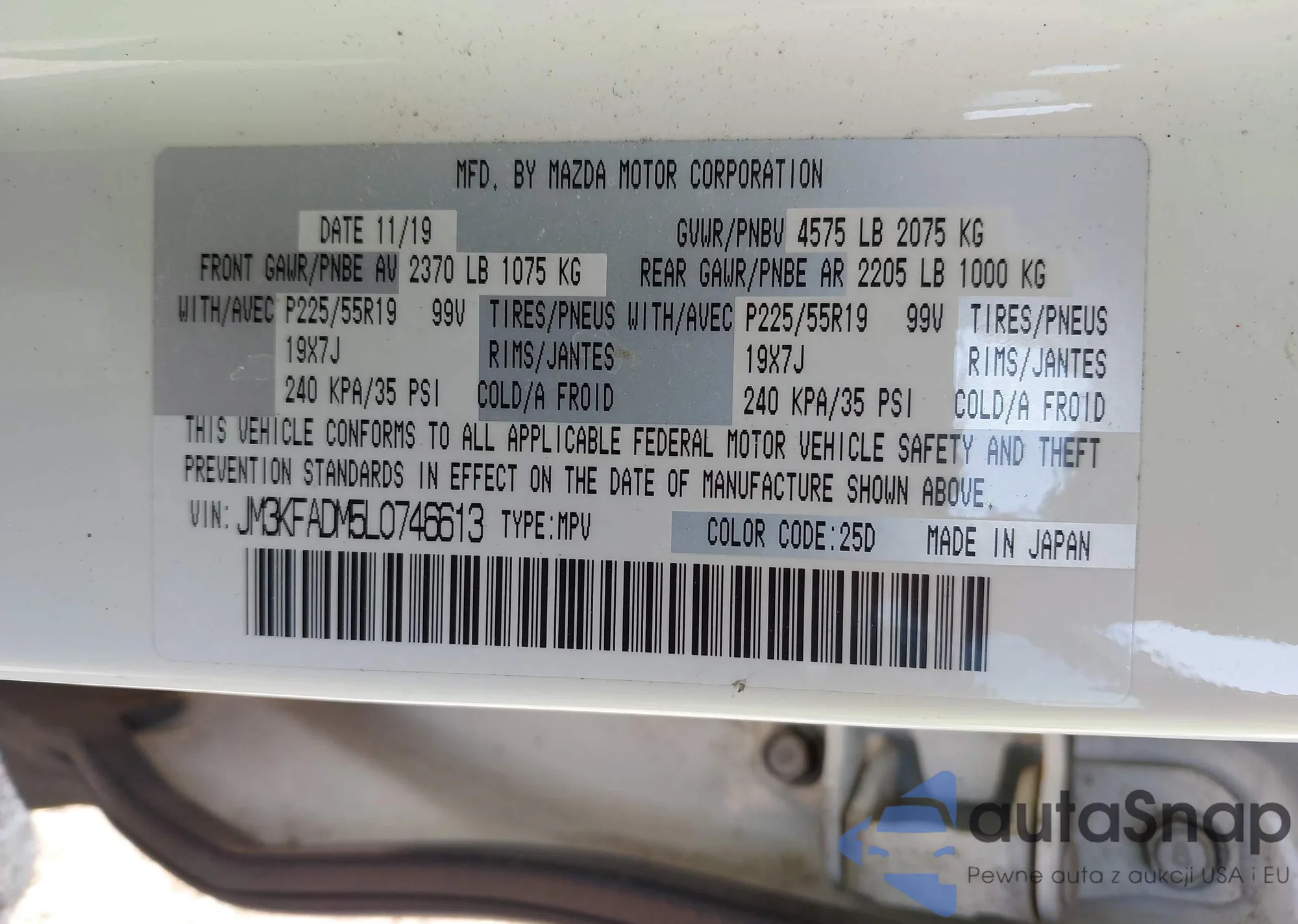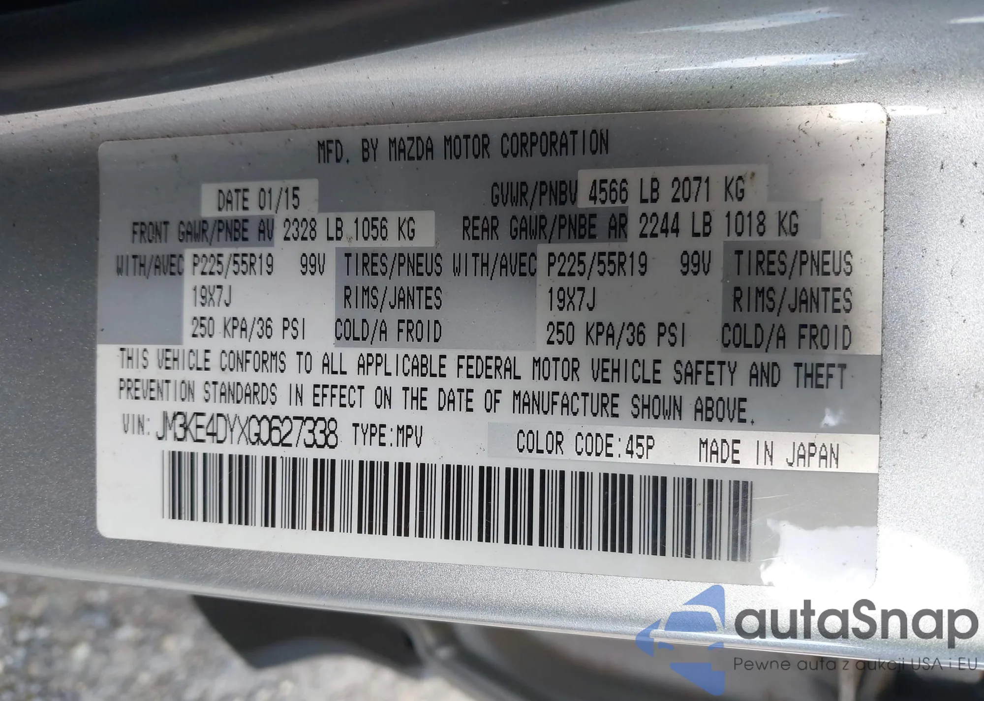 LOT: 43425146 VIN: JM3KE4DYXG0627338