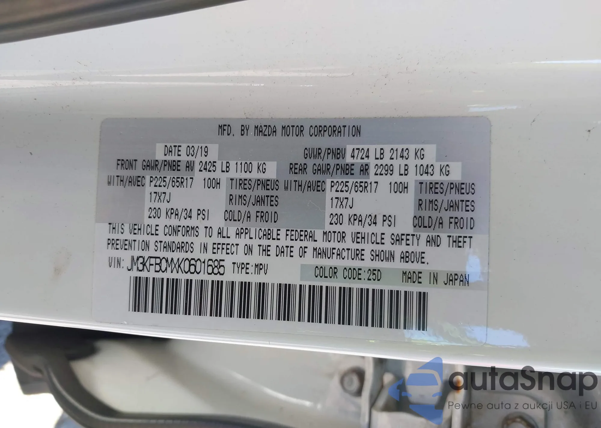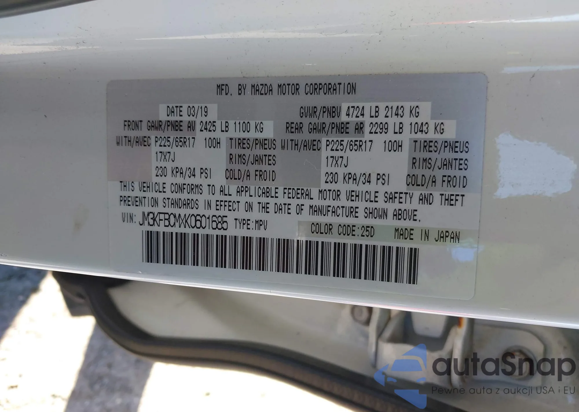• VIN JM3KFBCMXK0601685