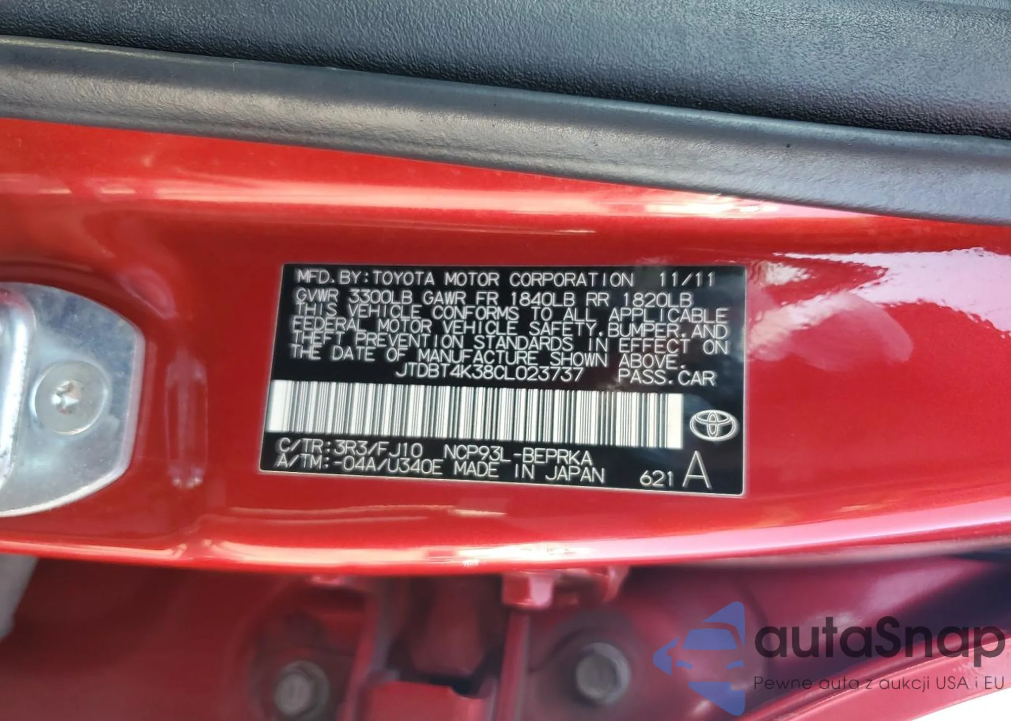 LOT: 71935895 VIN: JTDBT4K38CL023737
