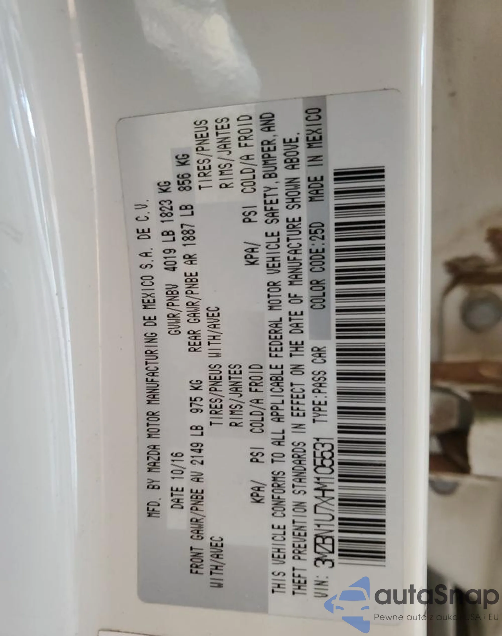 • VIN 3MZBN1U7XHM105531