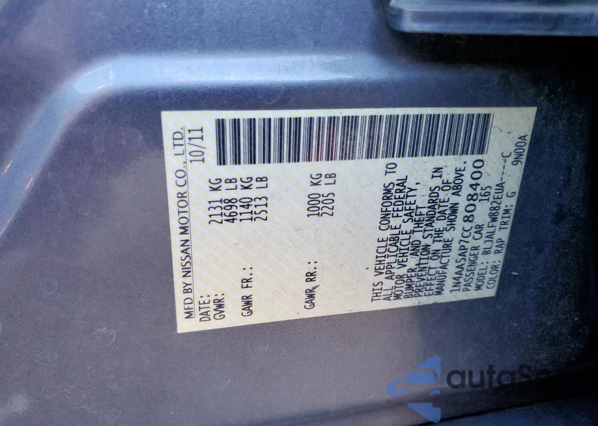 LOT: 71023835 VIN: 1N4AL3APXDN580168