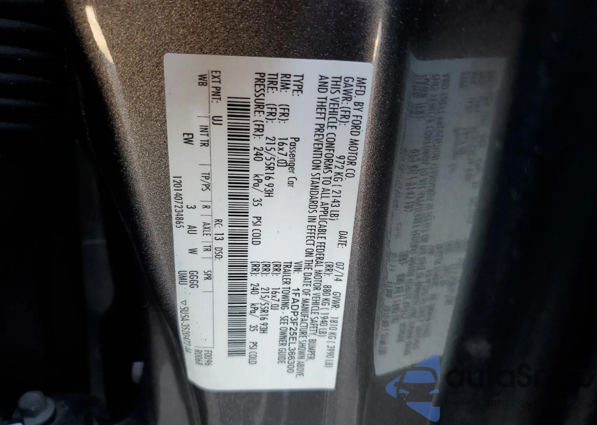 LOT: 85277665 VIN: 1FADP3F25EL366300