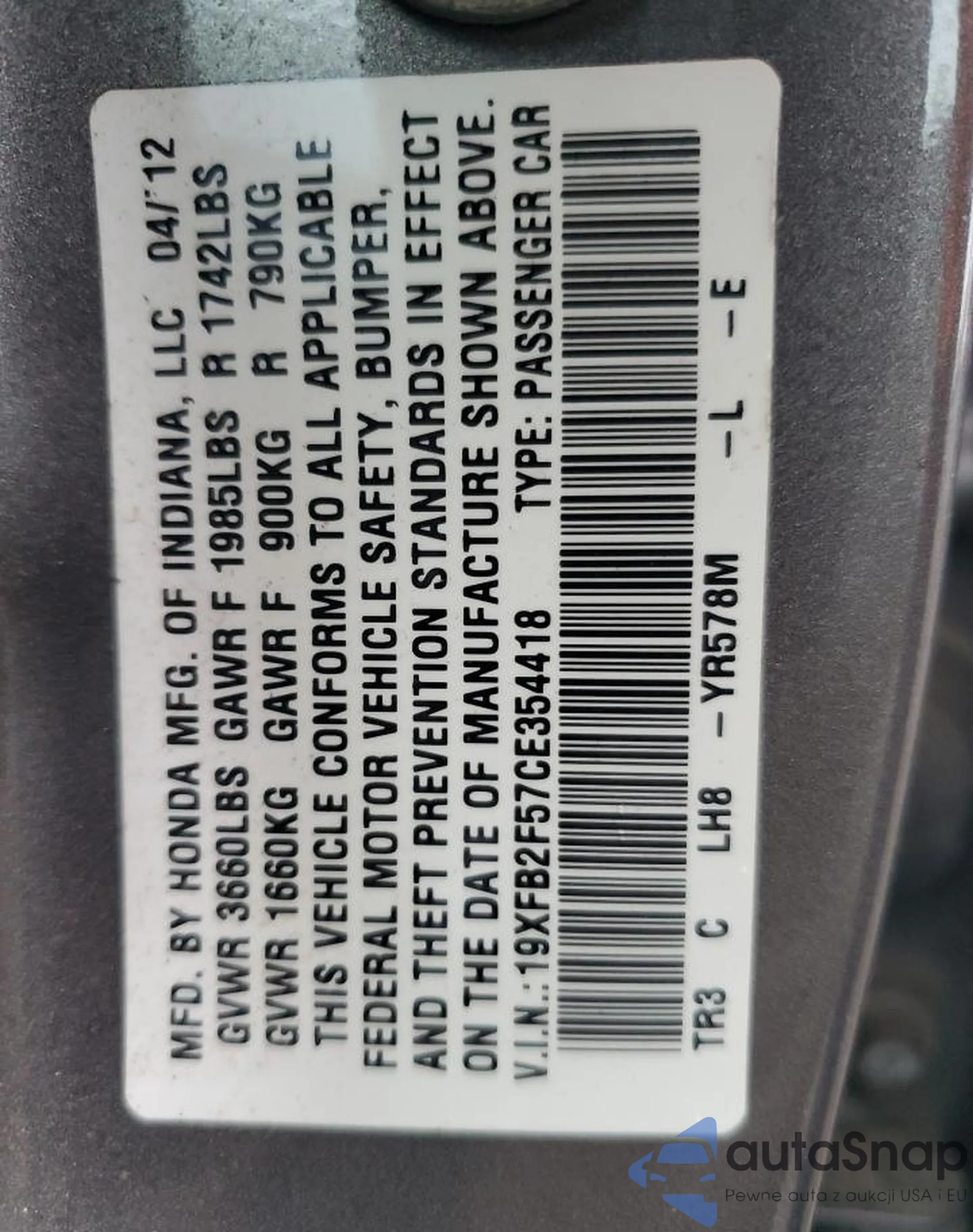 • VIN 19XFB2F57CE354418
