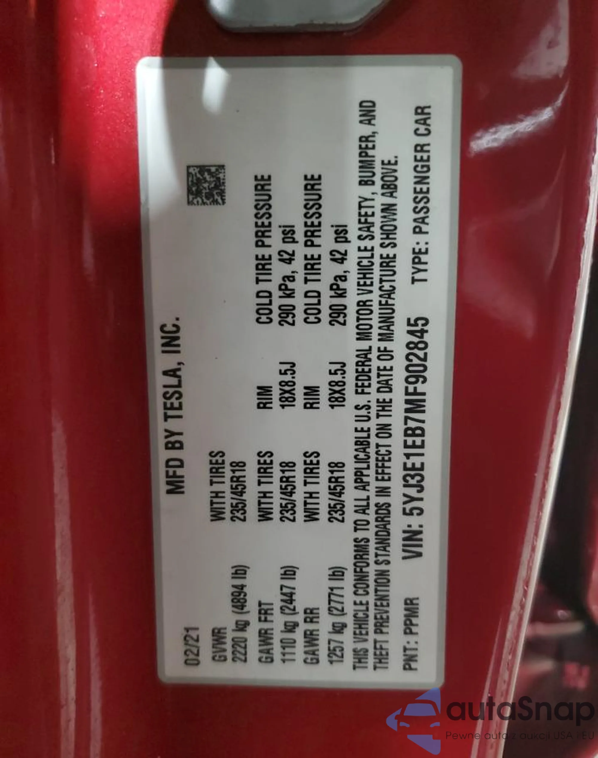 • VIN 5YJ3E1EB7MF902845
