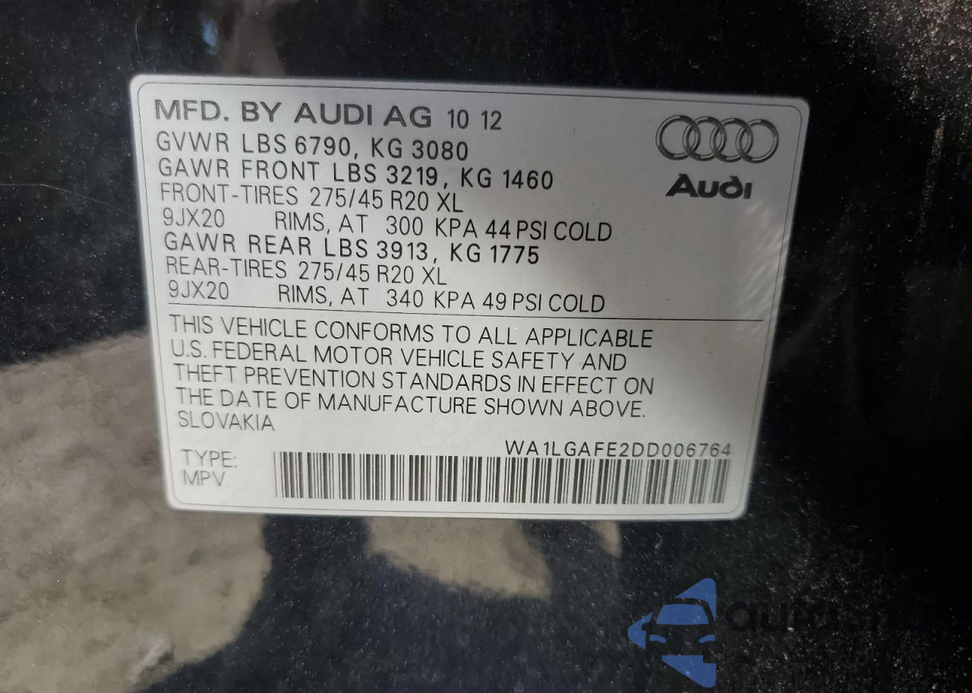LOT: 82192475 VIN: WA1LGAFE2DD006764