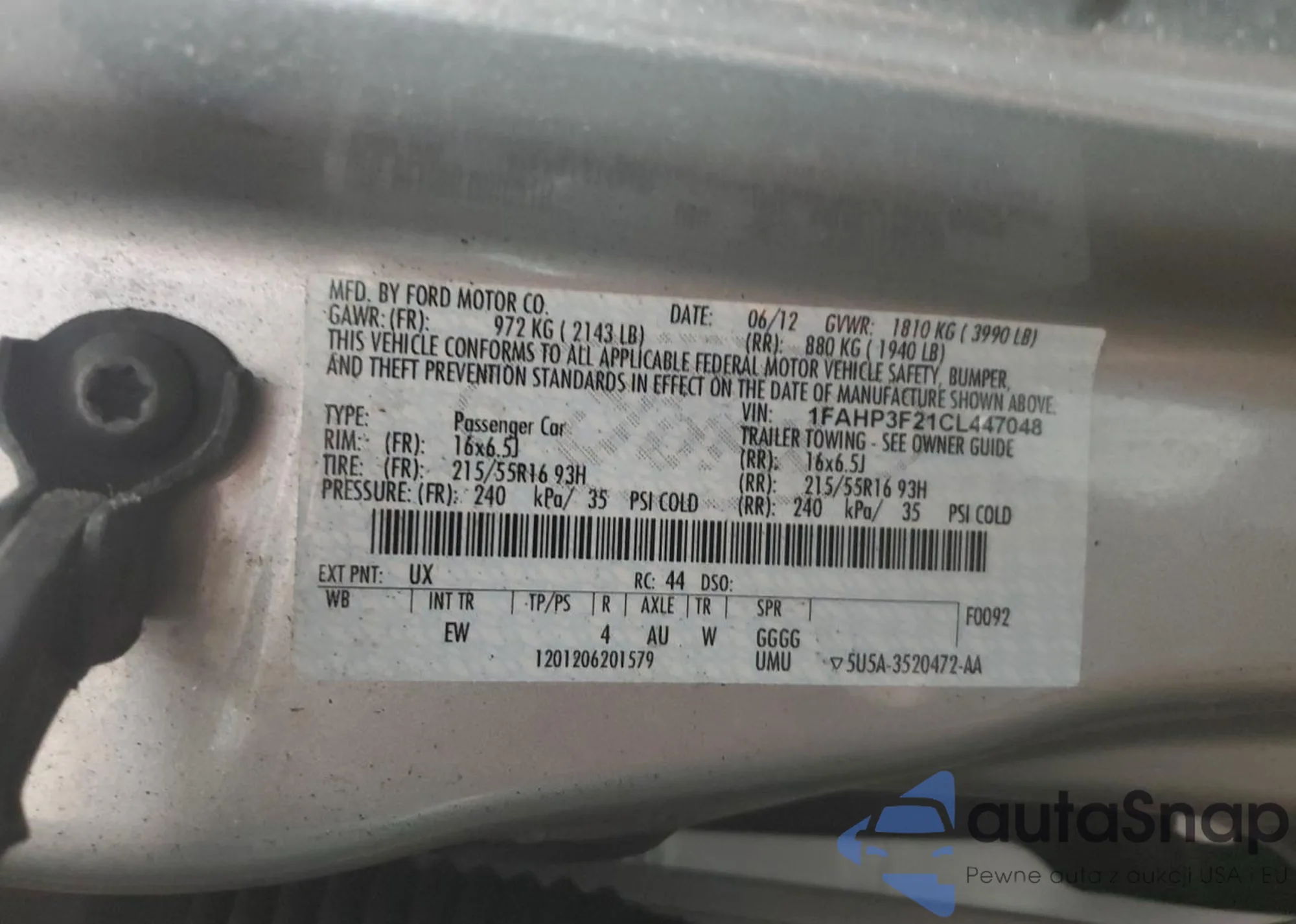 LOT: 86503795 VIN: 3FA6P0LU4KR191693
