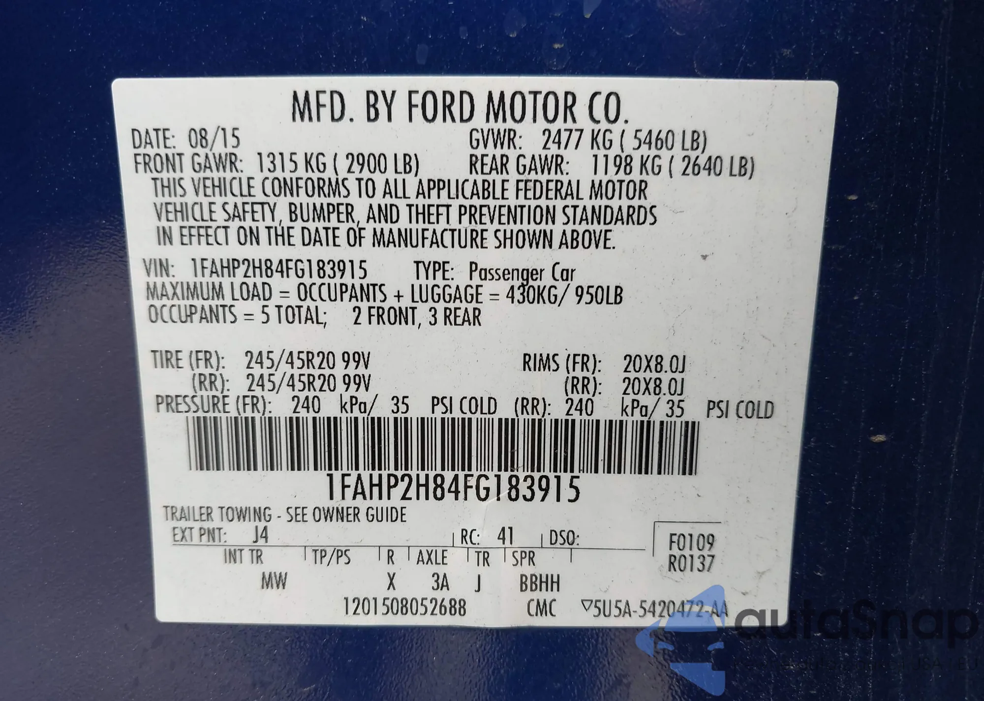 LOT: 42805408 VIN: 3FA6P0HD2FR134021