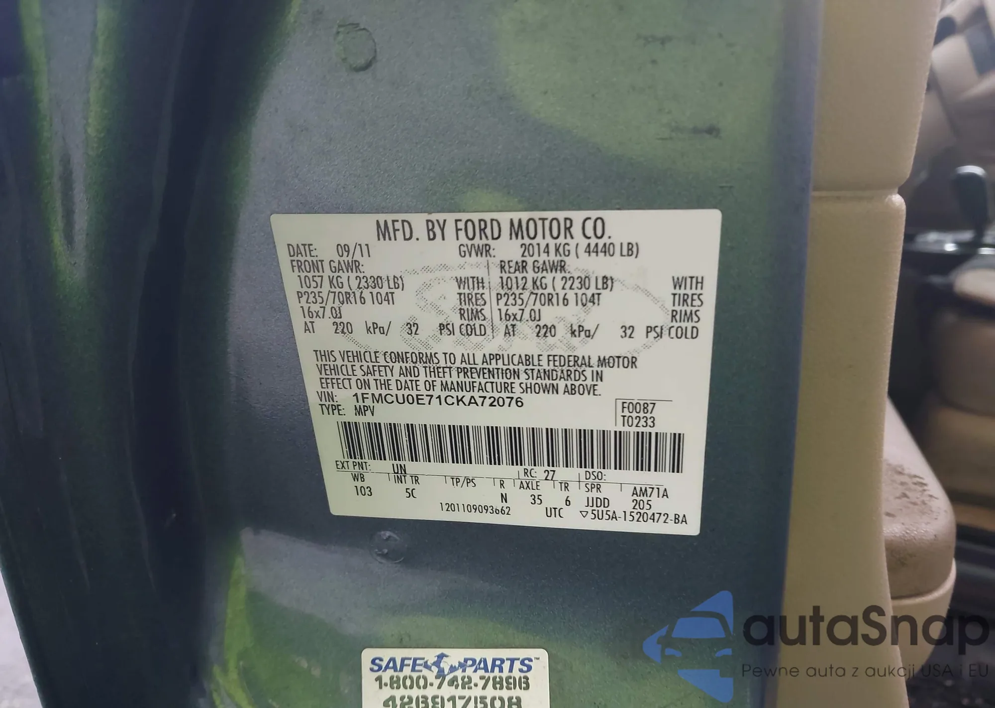 LOT: 43552144 VIN: 1FMCU0E71CKA72076