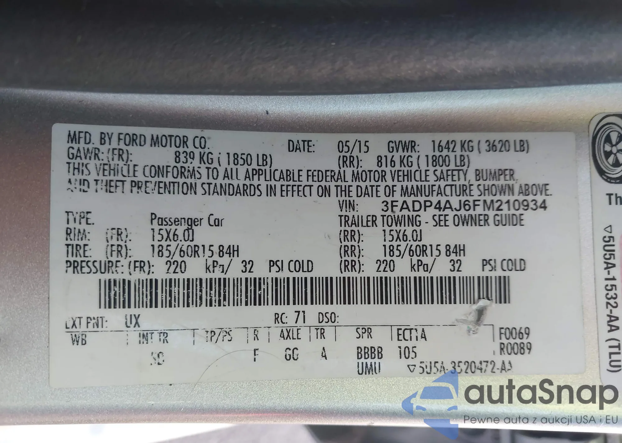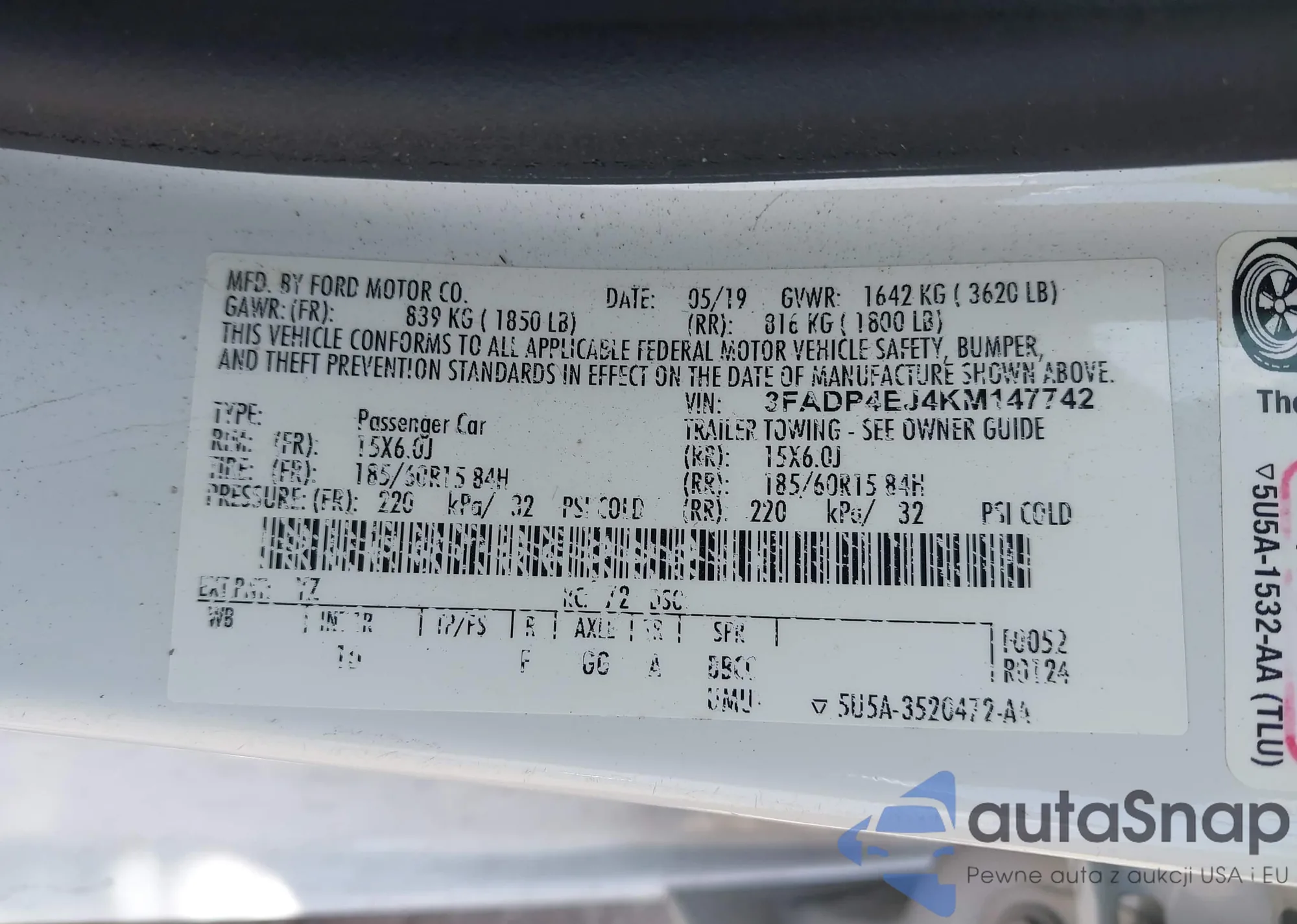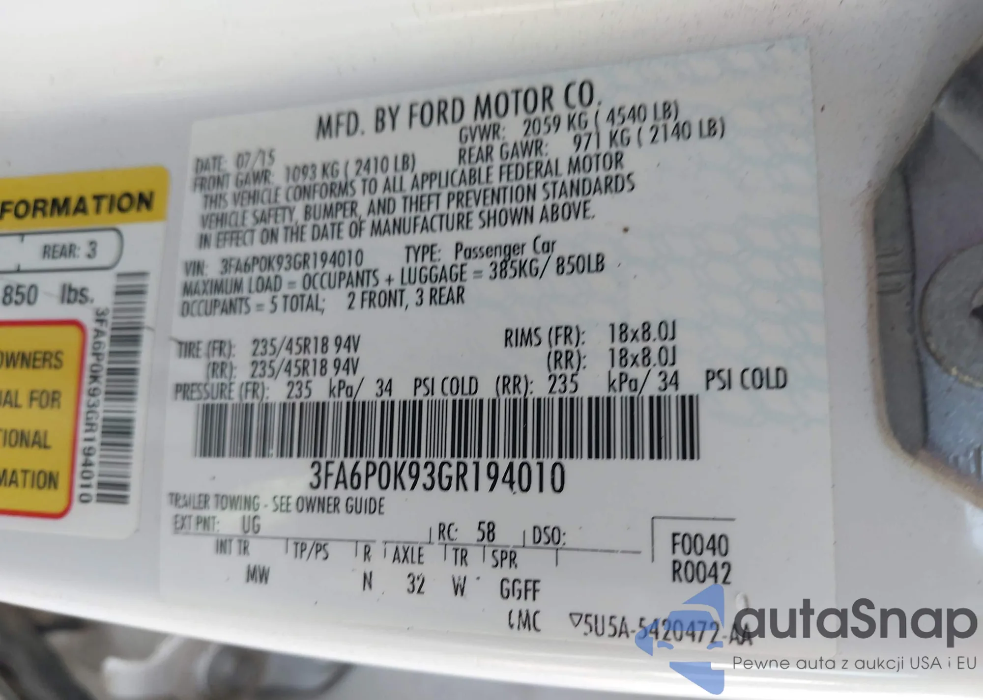 LOT: 43239314 VIN: 3FA6P0K93GR194010