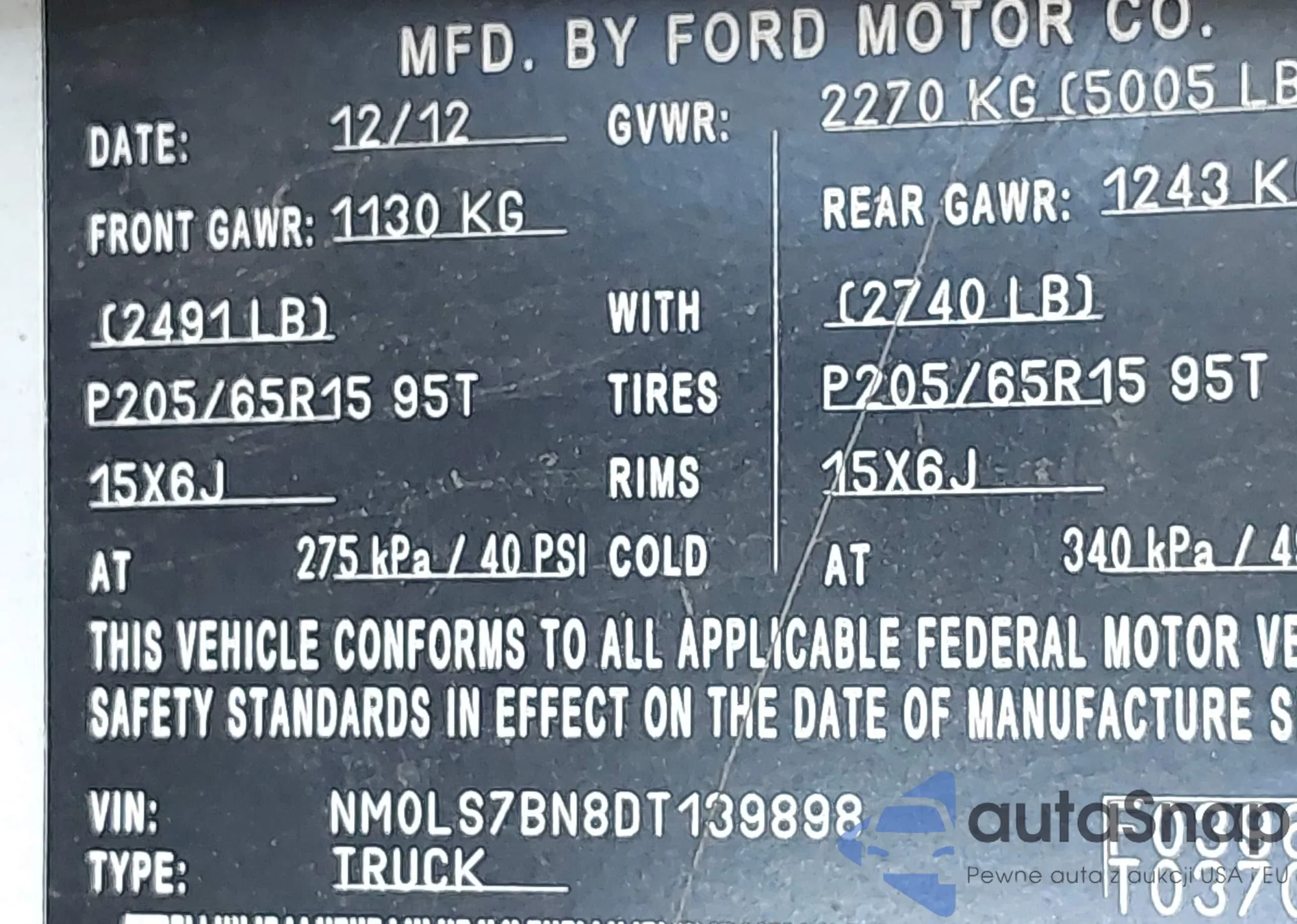 • VIN NM0LS7BN8DT139898