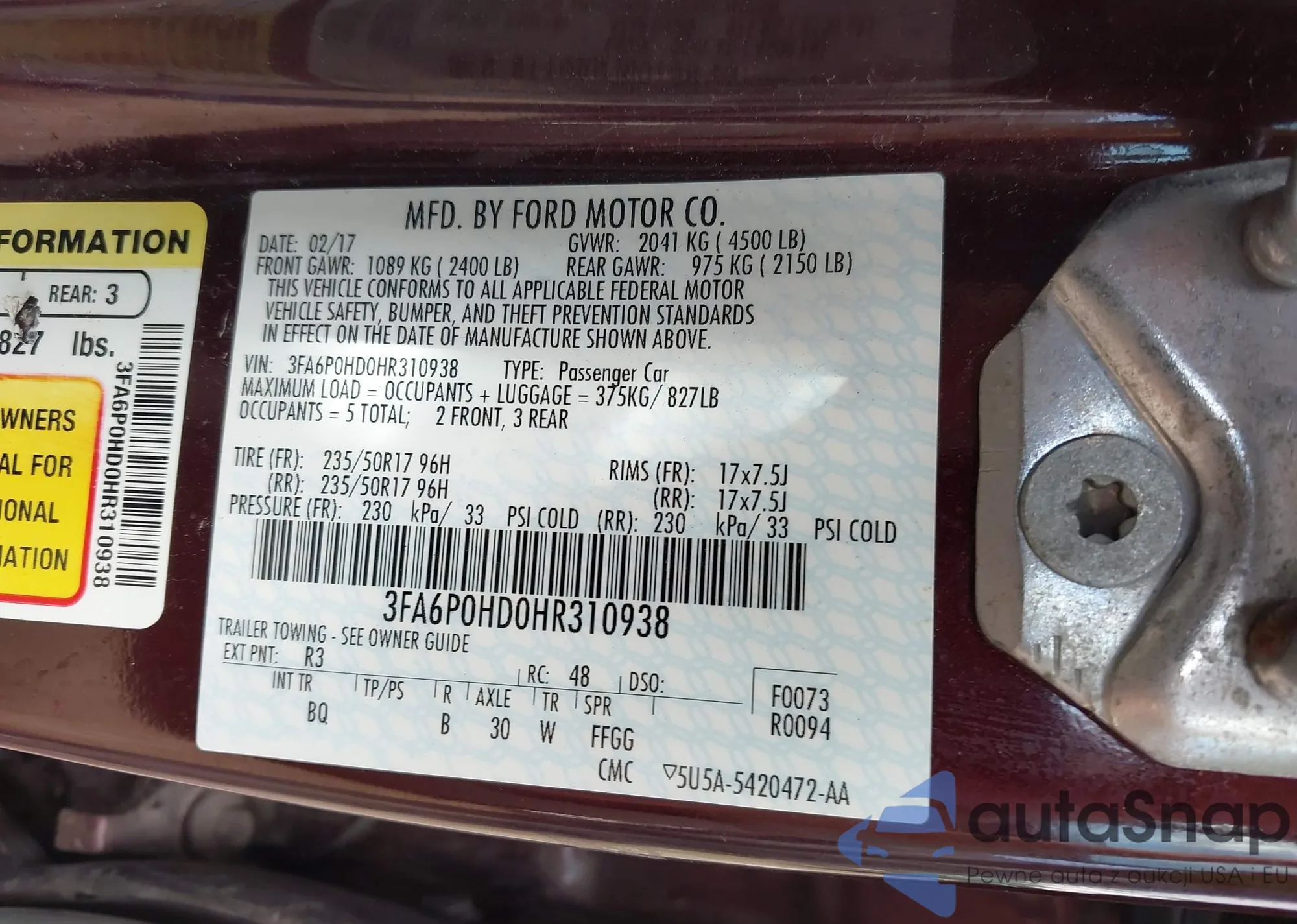 • VIN 3FA6P0HD0HR310938