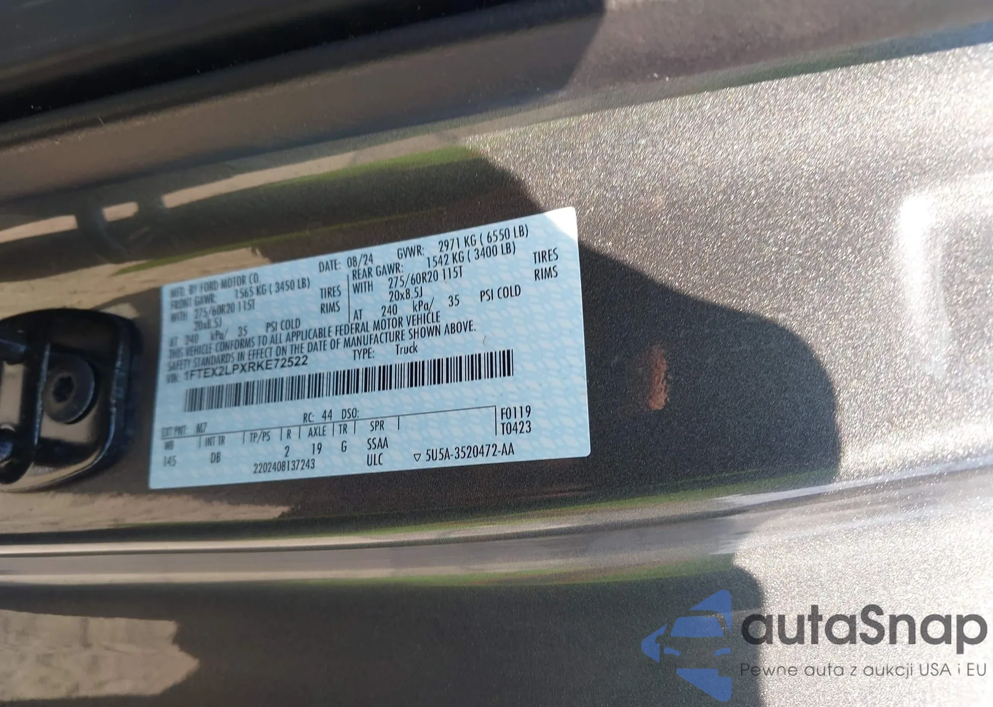 • VIN 1FTEX2LPXRKE72522