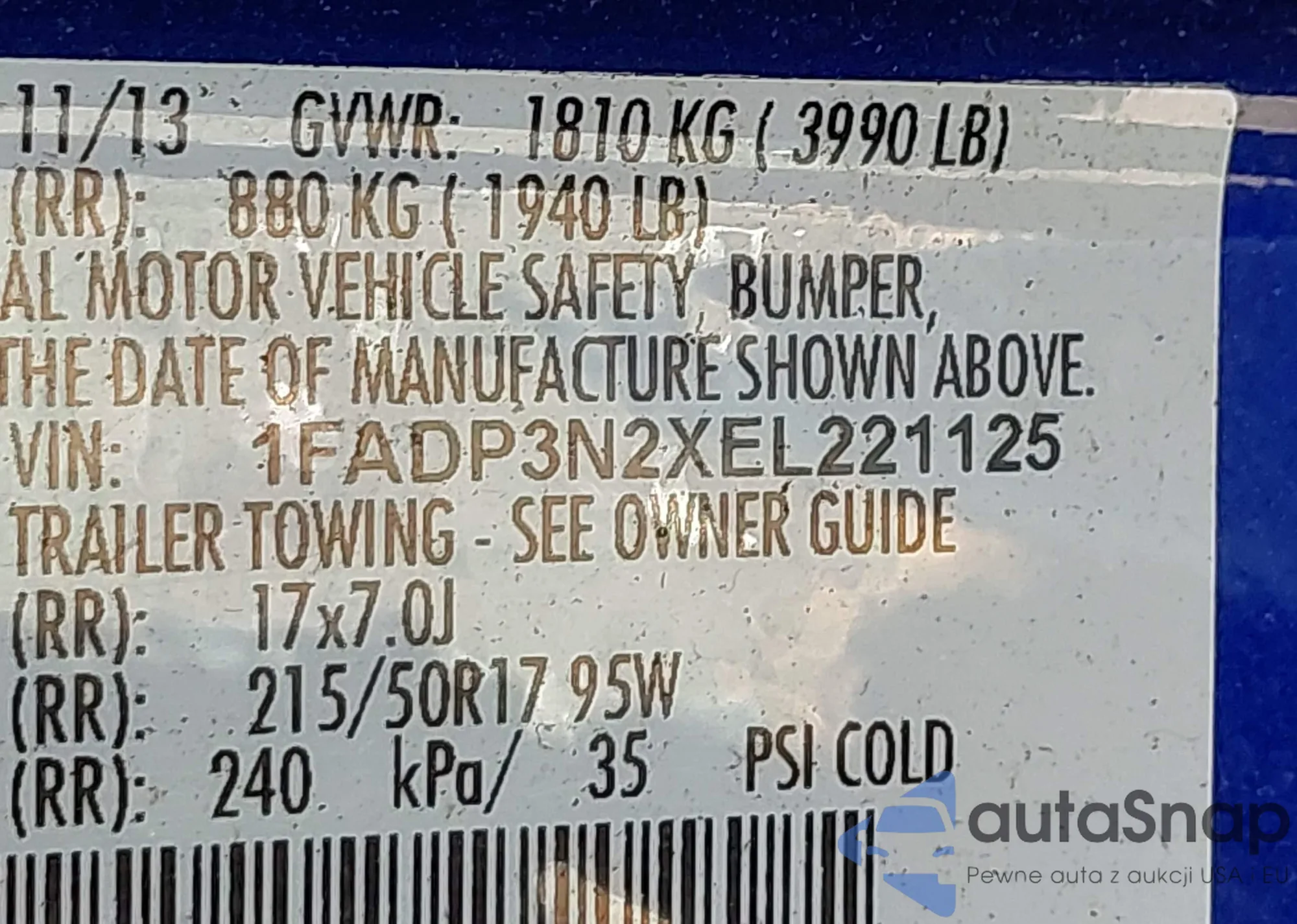 LOT: 43258398 VIN: 1FADP3N2XEL221125