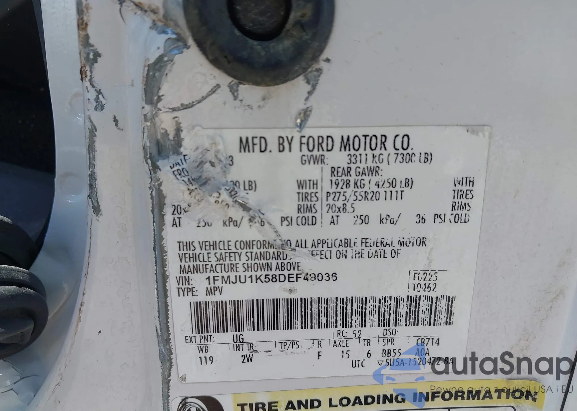 LOT: 42786936 VIN: 1FMJU1K58DEF49036